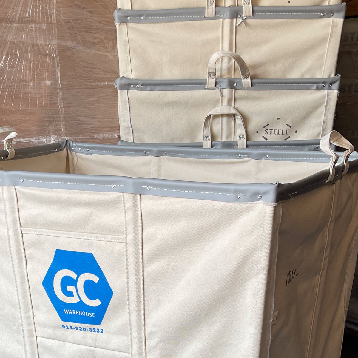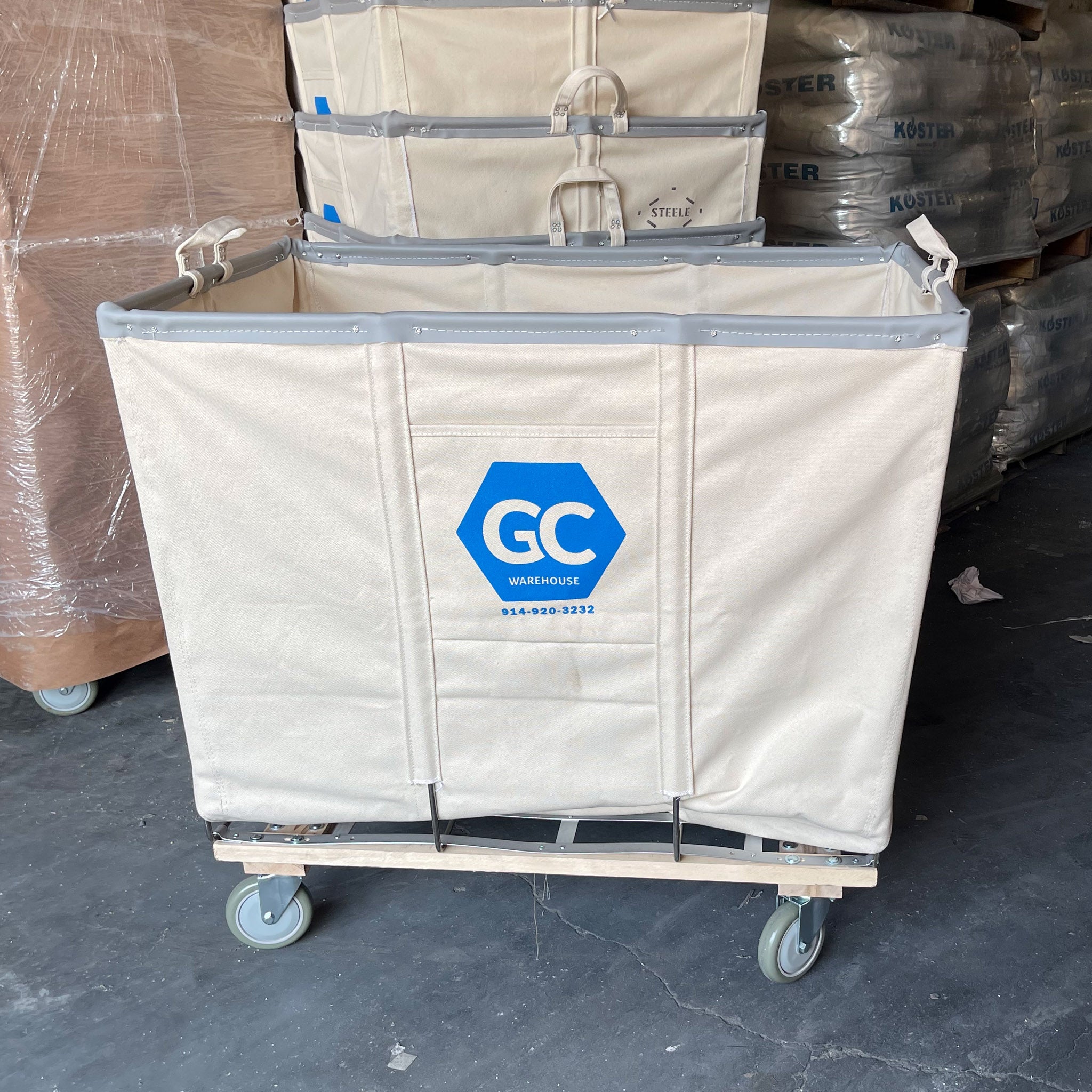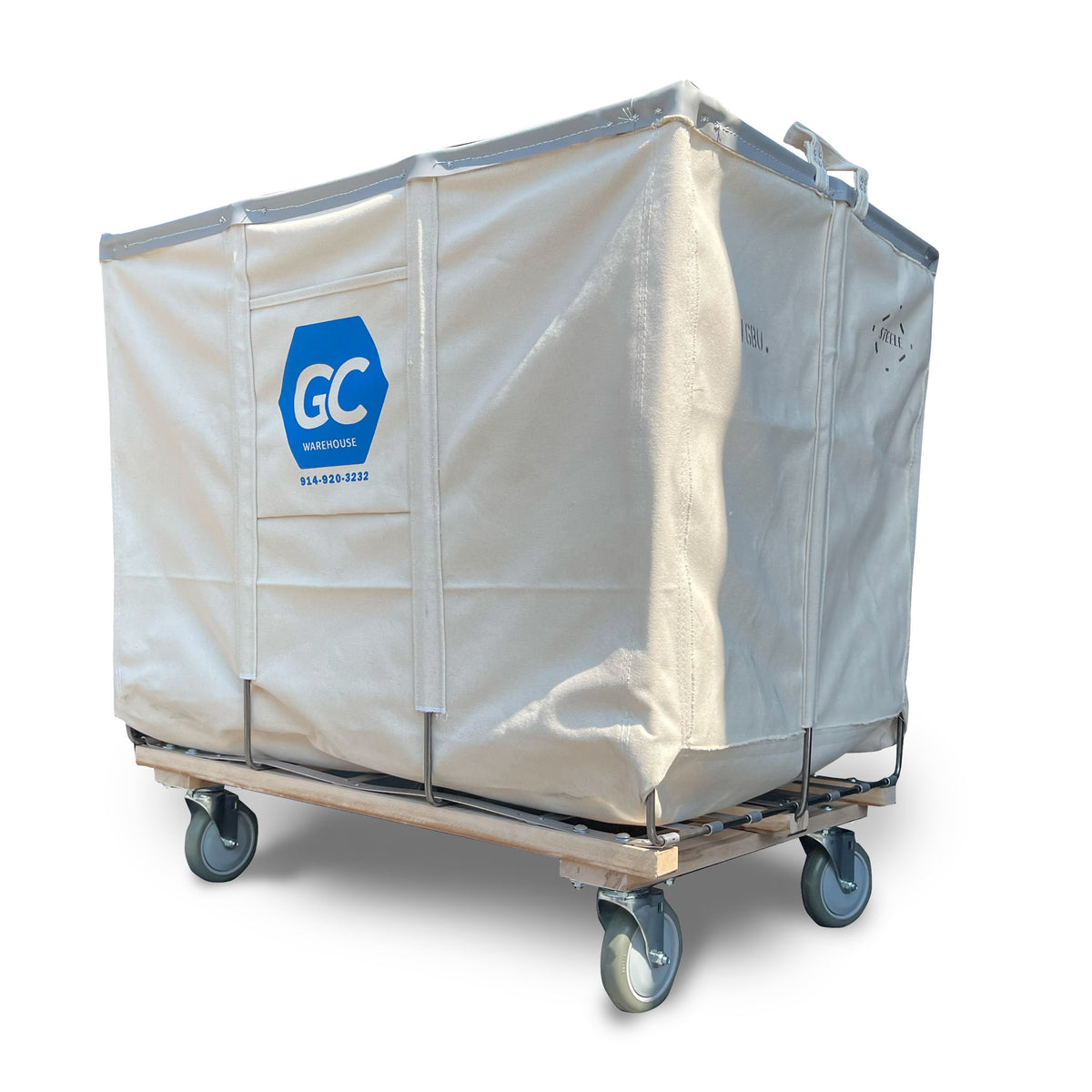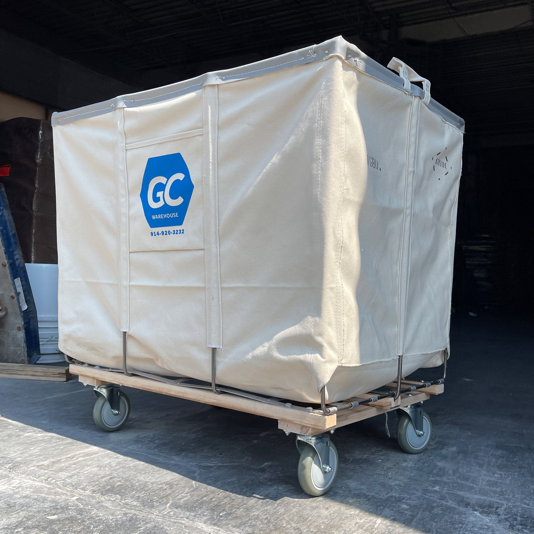Made of heavy duty #4 duck natural canvas with handles at both ends riveted around the steel rim to provide maximum strength, this cart is ideal for maintenance service, construction/demolition and retail warehouses. Each unit comes on four swivel non-marking polyurethane casters.