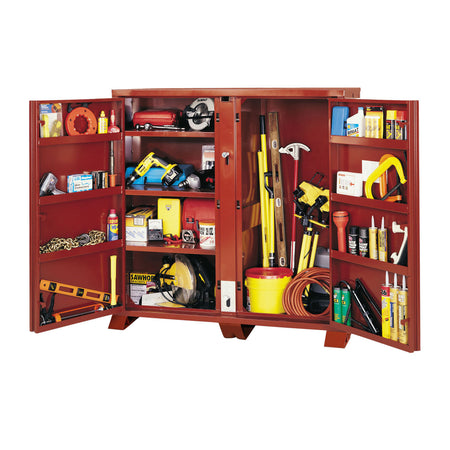 Organization how you want it. With four models to choose from with varying storage capacity and door options, JOBOX cabinets give you the power to make organizing your job site, plant floor, or maintenance bay a cinch. With the innovative foot operated latch and Anti-Tip bolsters you also get first class accessibility and safety features.