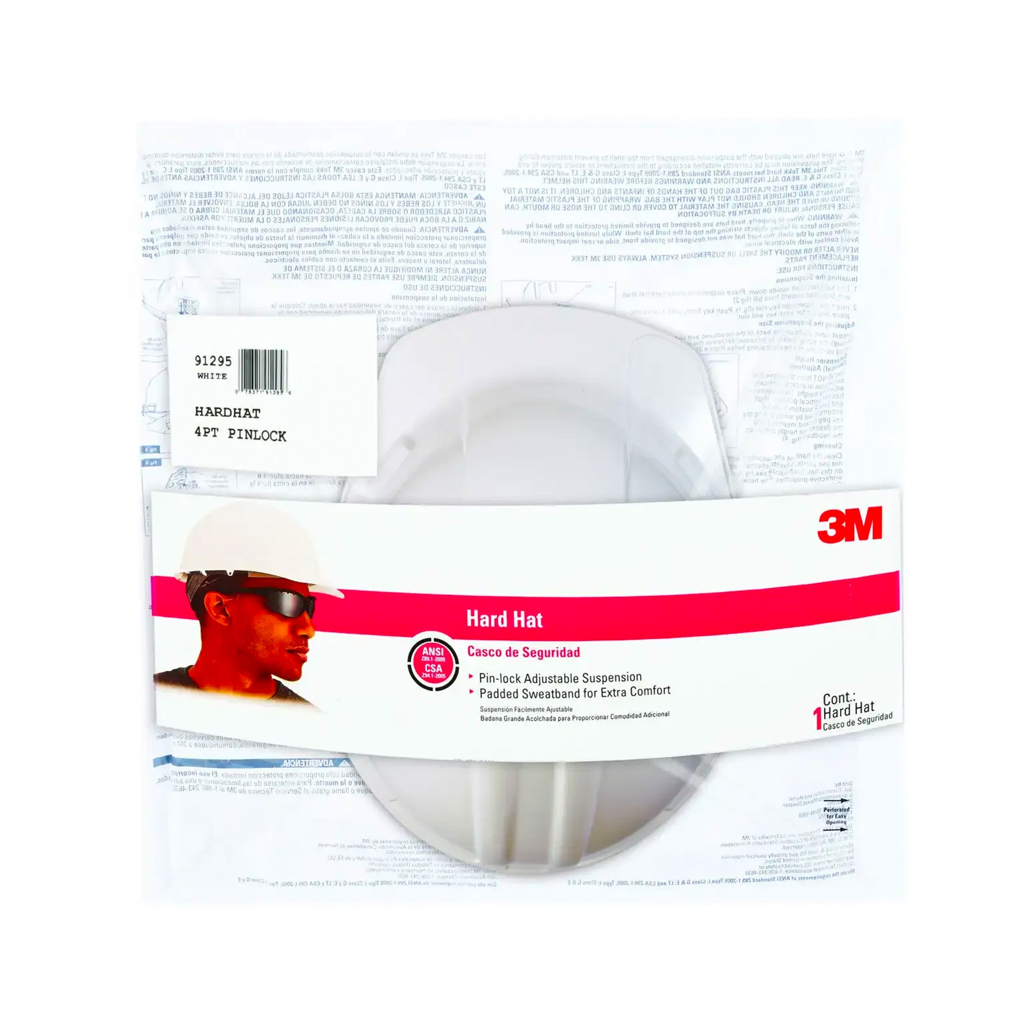 - 3M™ Vented Hard Hat with Pin Lock Adjustment is worn to help protect the head from possible top impact