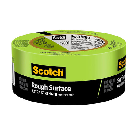 Scotch Rough Surface Extra Strength Painter's Tape features a very strong adhesive designed for performance on rough, non-damageable surfaces for the protection you need to get the job done. This paint tape bonds aggressively to brick, concrete, stucco or rough wood, and it's recommended for use with or on lacquer coatings. Scotch Rough Surface Painters Tape holds strong to interior surfaces for 5 days and exterior surfaces for 3 days while removing easily without leaving any sticky residue behind. Resistant to UV rays, sunlight and moisture, Scotch Painter's Tape is an ideal indoor and outdoor tape, letting you conquer wow-worthy painting projects on multiple surfaces. Made from 50 percent renewable resources with a core made from 70 percent post-consumer waste, this solvent-free painter tape is made in a zero-landfill site certified for energy management to provide you with a sustainable painting product. To use, apply the painting tape firmly onto a clean, dry and dust-free surface and let sit for 30 to 60 minutes before painting. Wait until the paint is dry before removal. The best paint jobs start with Scotch Painter's Tape. With a full range of adhesive solutions, Scotch Brand delivers confidence in superior results to get the job done right and effectively the first time. Scotch Brand offers a full line of tapes specifically designed for the various demands of the project/job.