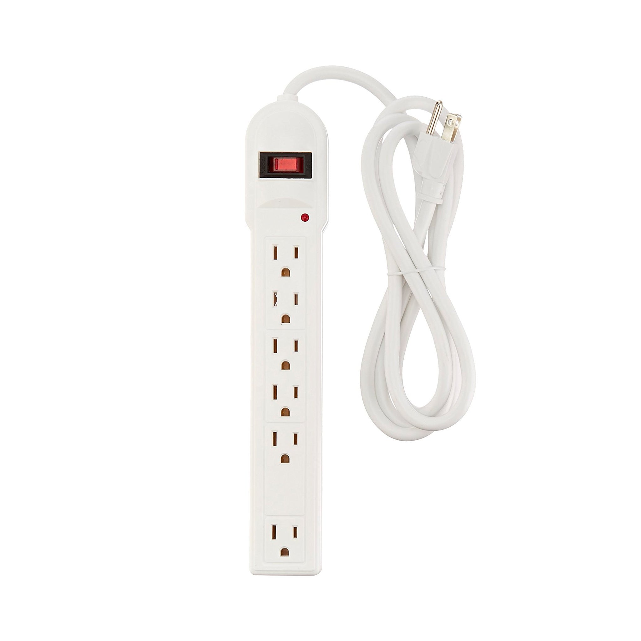 6-outlet, surge-protector power strip with 1 transformer outlet 790-Joule 3-Line Surge-Protection Rating to protect small appliances, phones, and lamps 6-foot long 14 AWG power cord Red "protected" LED indicator light with 15-Amp circuit breaker to signify you are protected Specifications: AC 15A, 125V, 60Hz, 1875W.