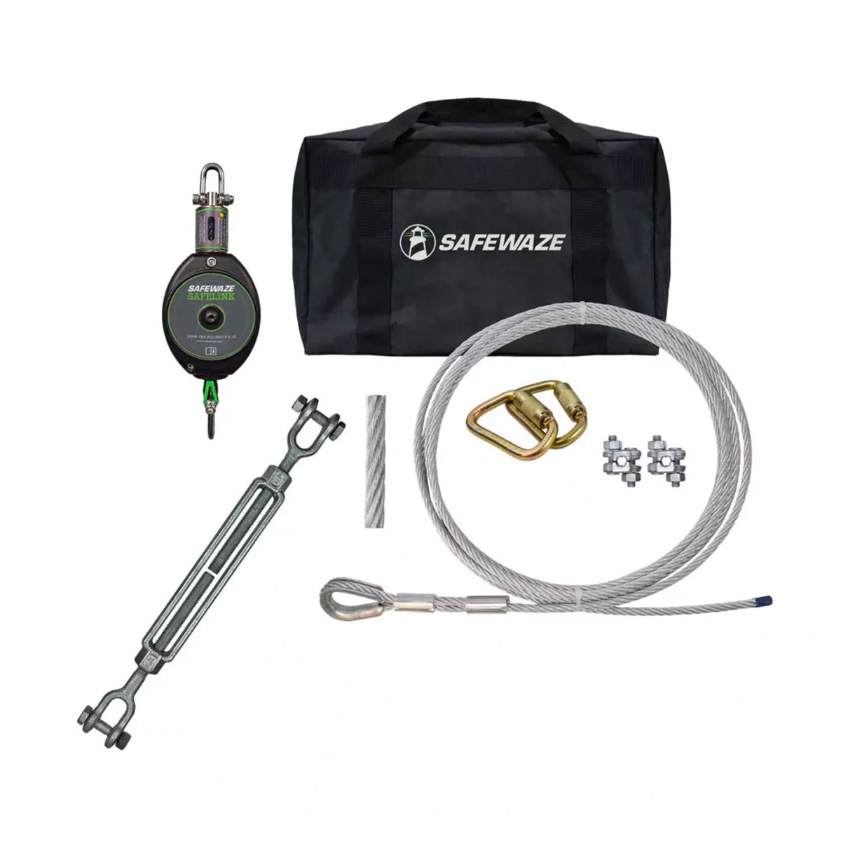 The 65' SafeLink Turnbuckle Kit addresses the difficulties of working on subdued or leading edge surfaces as well as other applications where horizontal work and low clearance fall hazards exist. Fast-acting brake assembly stops user quickly in the event of a fall.