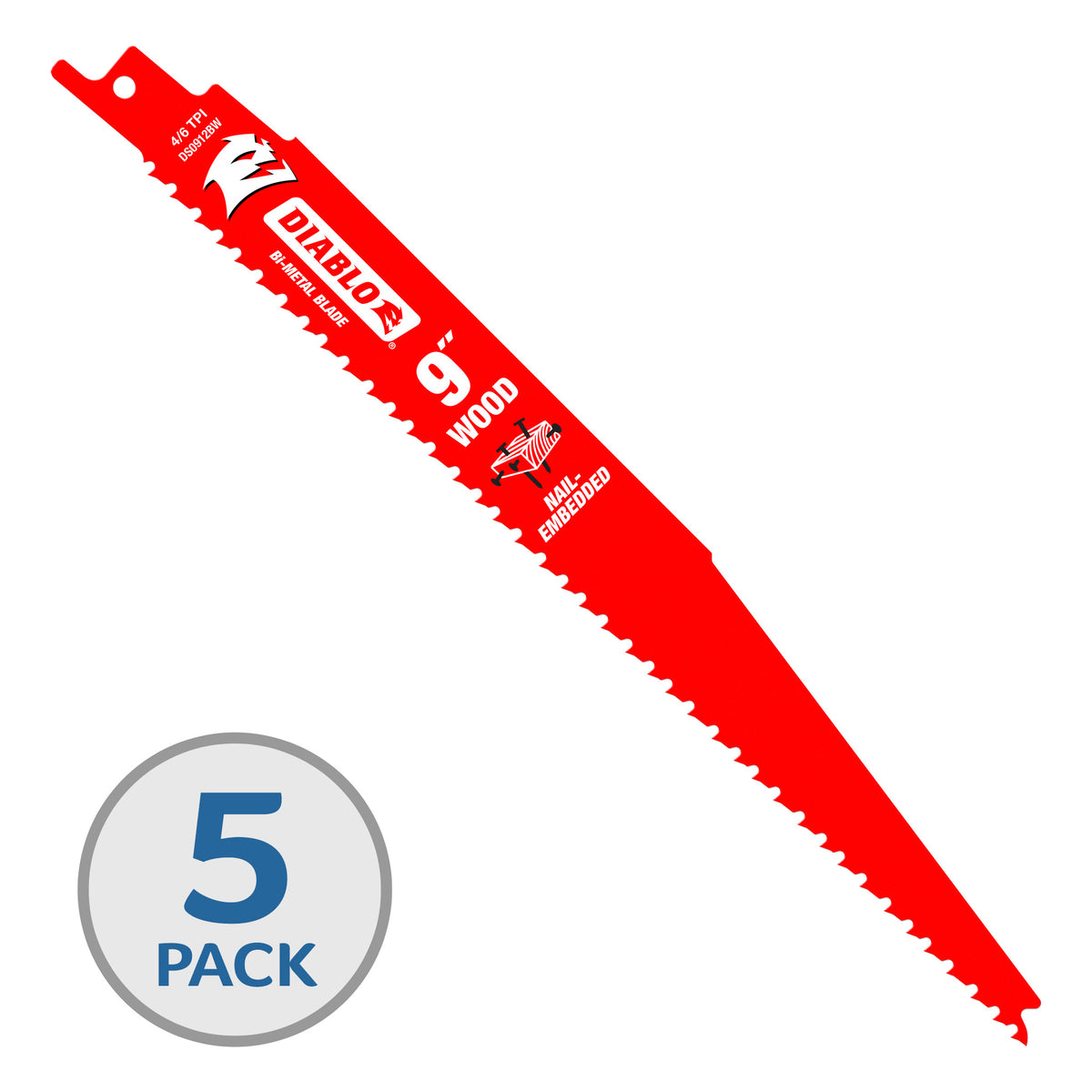 Diablo 9 in. Bi-Metal Recip Blade for Nail Embedded Wood (5 Pack) - DS0912BW5