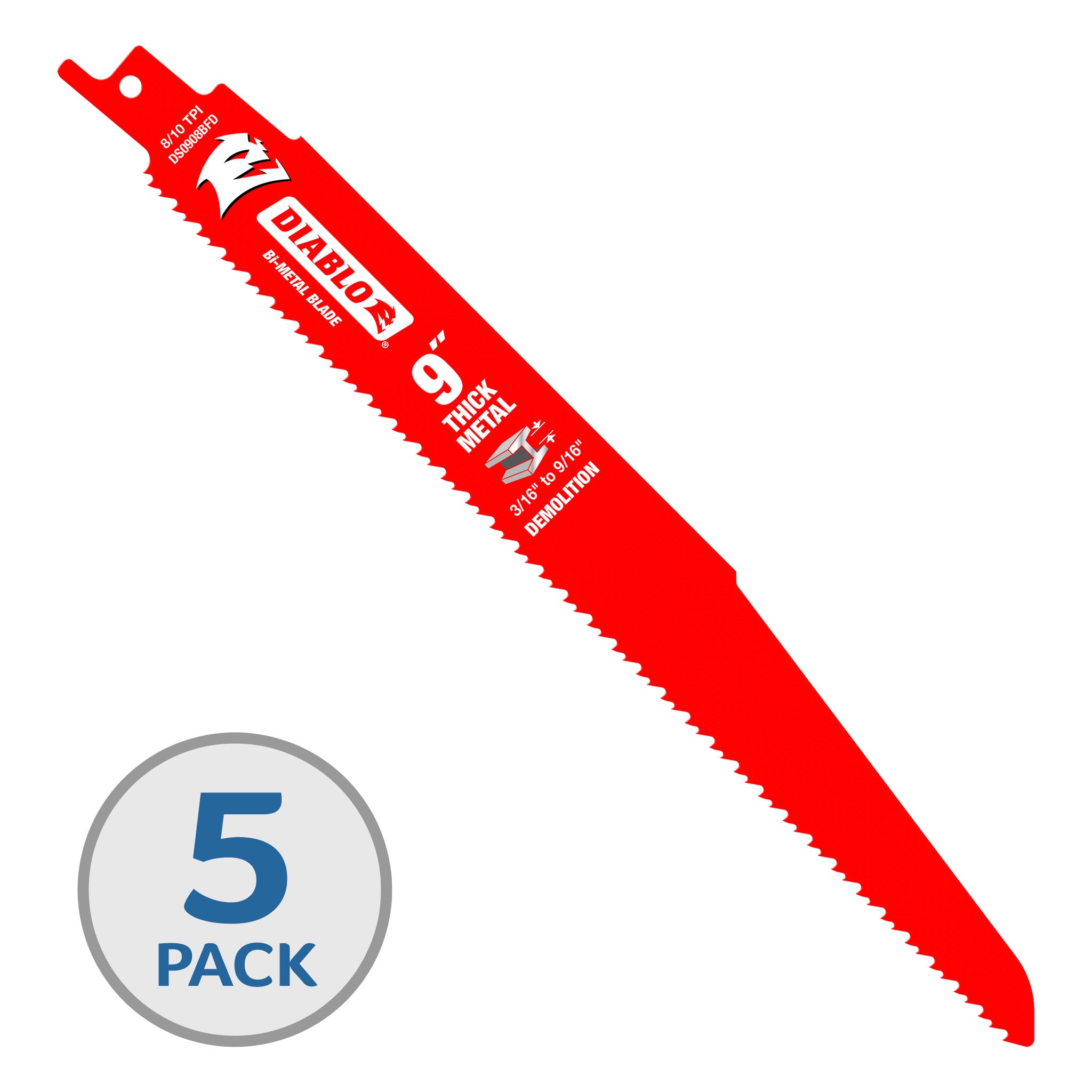 Diablo 9 in. Bi-Metal Recip Blade for Thick Metal/Demolition (5 Pack) - DS0908BFD5
