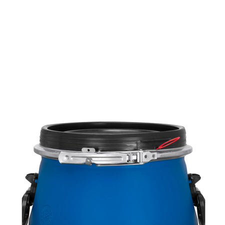 The lever lock ring securely seals the drum. Simply place the ring around the drum and close the lever to seal. To open, lift the lever to release.