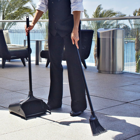 The Rubbermaid Commercial Executive Lobby Pro® Dust Pan is ideal for jobsites, restaurants, lobbies, and more. This essential cleaning tool features smooth rear wheels that improve wear resistance. Discreet and reliable, the lobby dustpan will not stain, discolor, or absorb odors and reduces strain on staff by minimizing bending and scooping.