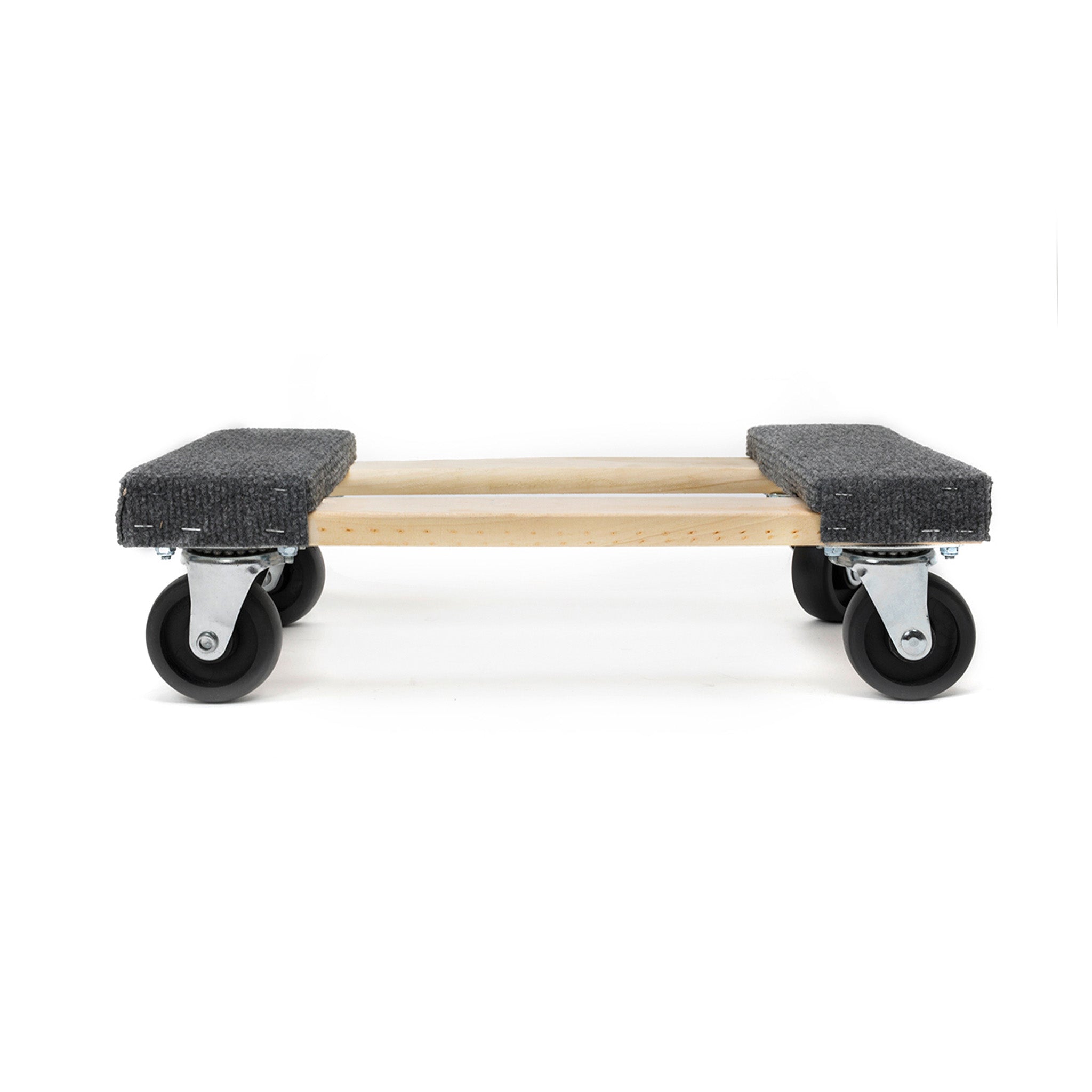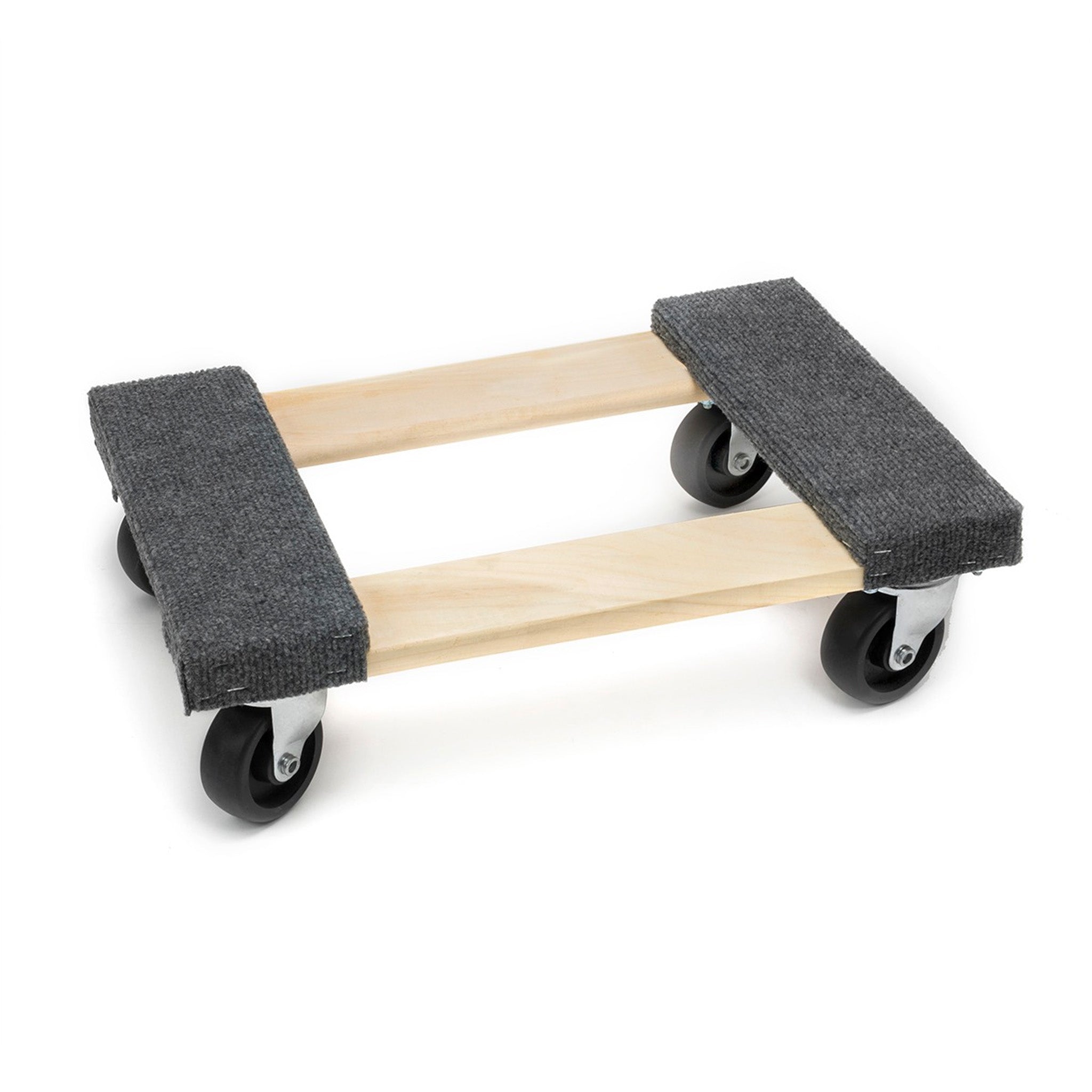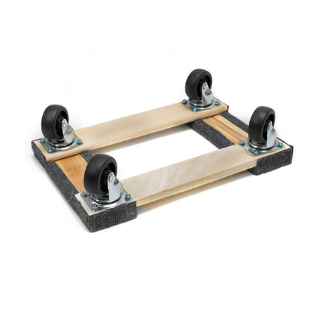 This all-purpose moving dolly is a versatile material handling tool for any home, shop or professional garage. The dolly is made of heavy duty hardwood with a carpeted surface that prevents slippage while protecting finishes and surfaces. The heavy duty moving dolly saves your back when transporting heavy boxes, moving furniture or handling other big items.