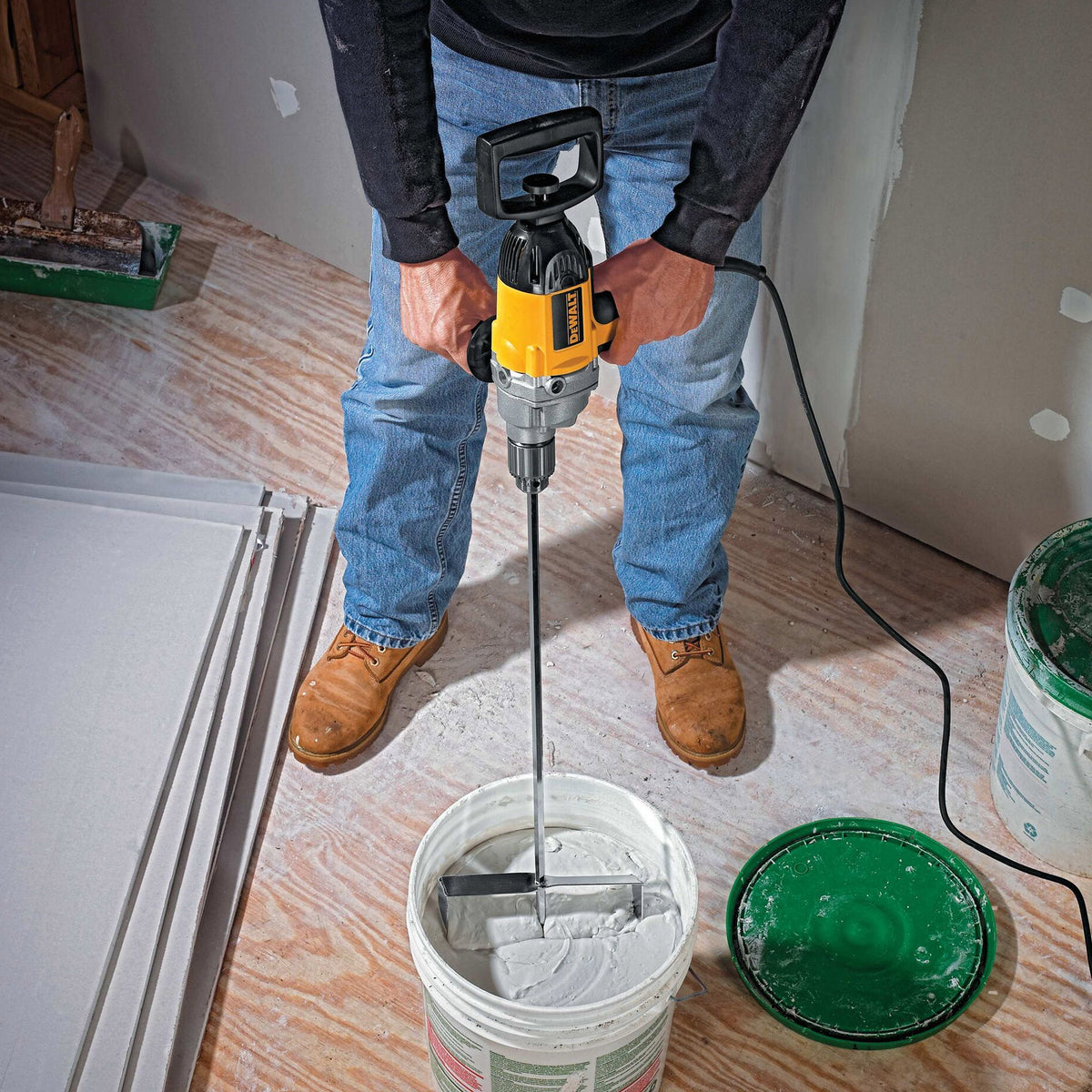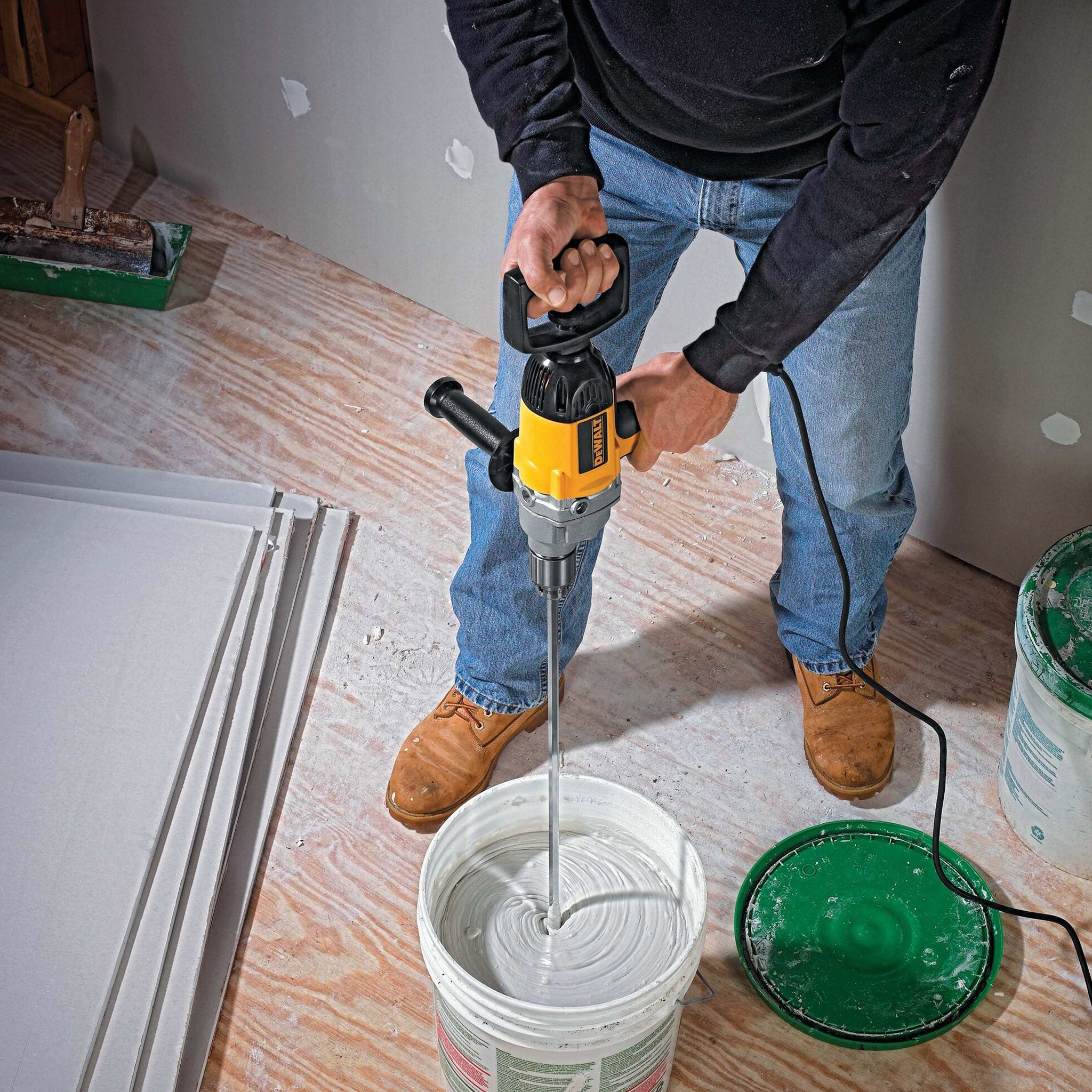 The DW130V 1/2" Spade Handle Drill features variable speed reversible switch to reduce air bubbles when mixing mud. 120V motor delivers 0-550 rpm to increase torque for drilling and mud mixing. Lightweight and comfortable grip to minimize downtime.