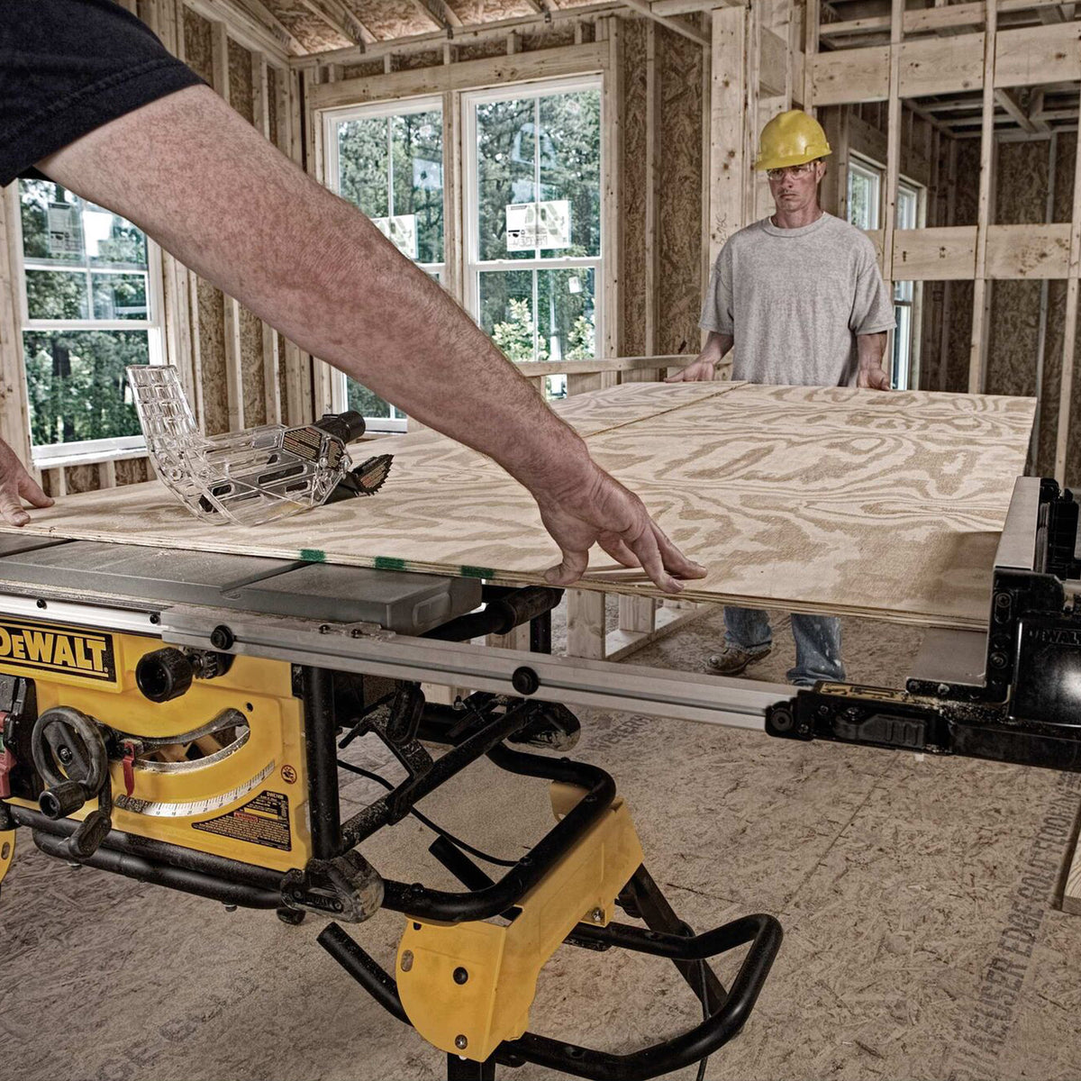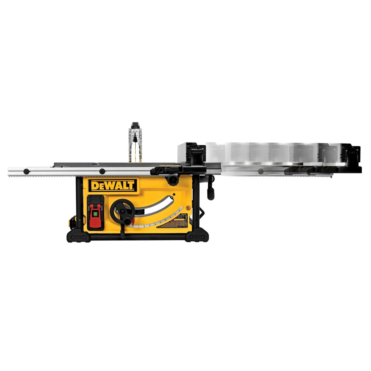 The DWE7491RS 10" Jobsite Table Saw 32 - 1/2" Rip Capacity, and a Rolling Stand has a 15 Amp motor and 32-1/2" rip capacity to allow cutting of large and hardwood materials. Features tool-free guarding component adjustments and fast, accurate fence adjustments. Rolling stand designed for easy set up and breakdown with excellent stability.