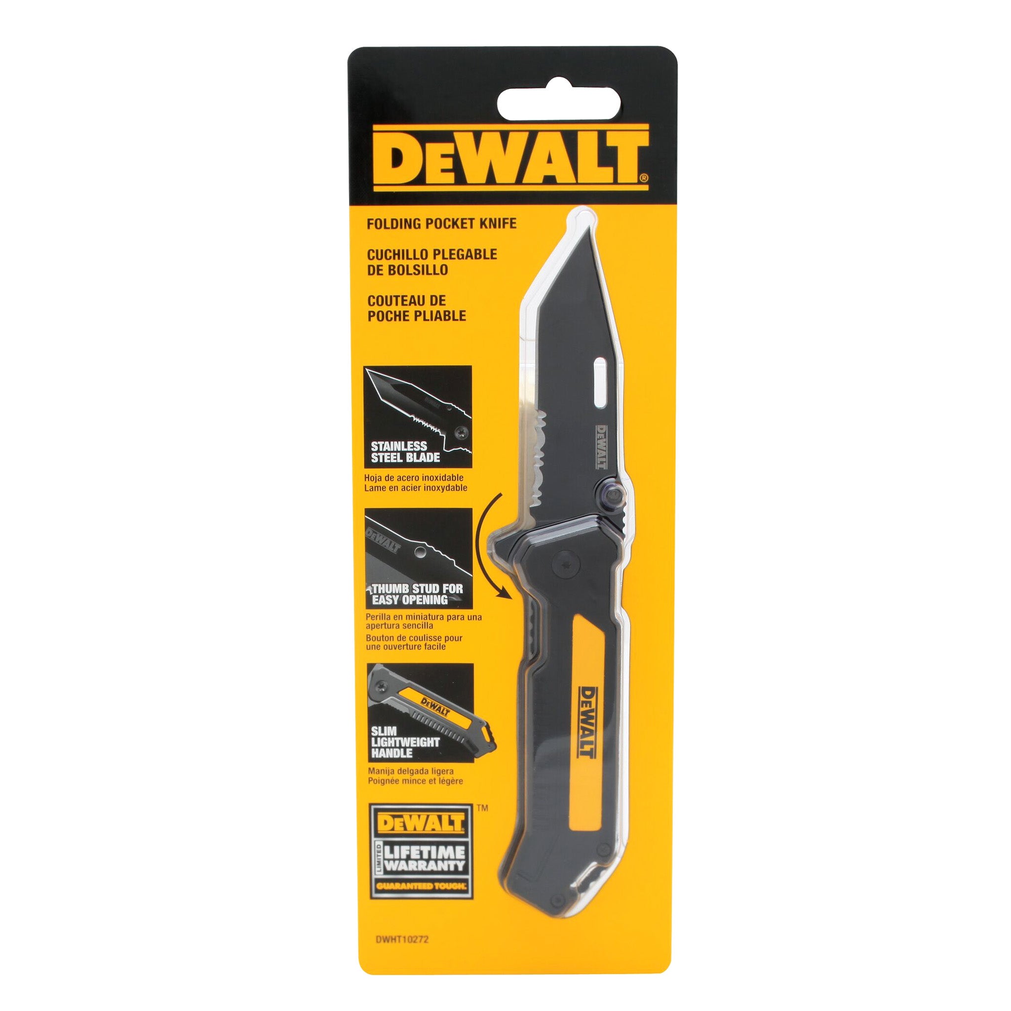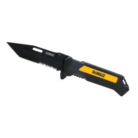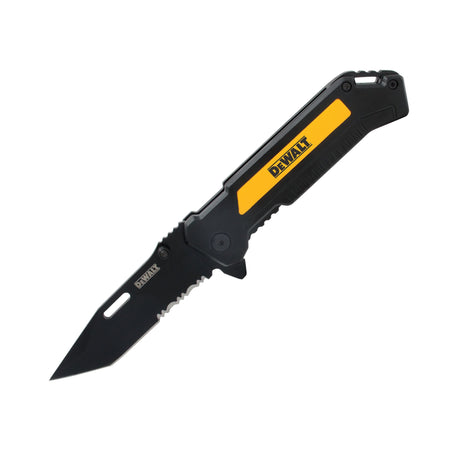 The Folding Pocket Knife has a comination blade with both straight and serrated edges, ideal for both push cuts and slice cuts. This knife also features a tanto tip which enables the user to pierce through tough materials. The rust resistant stainless steel blade enables heavy use.