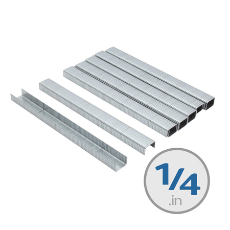 1/4" Heavy Duty 5,000 pk Staples come in a reusable plastic storage box which helps to prevent rust and deter sticks from breaking.