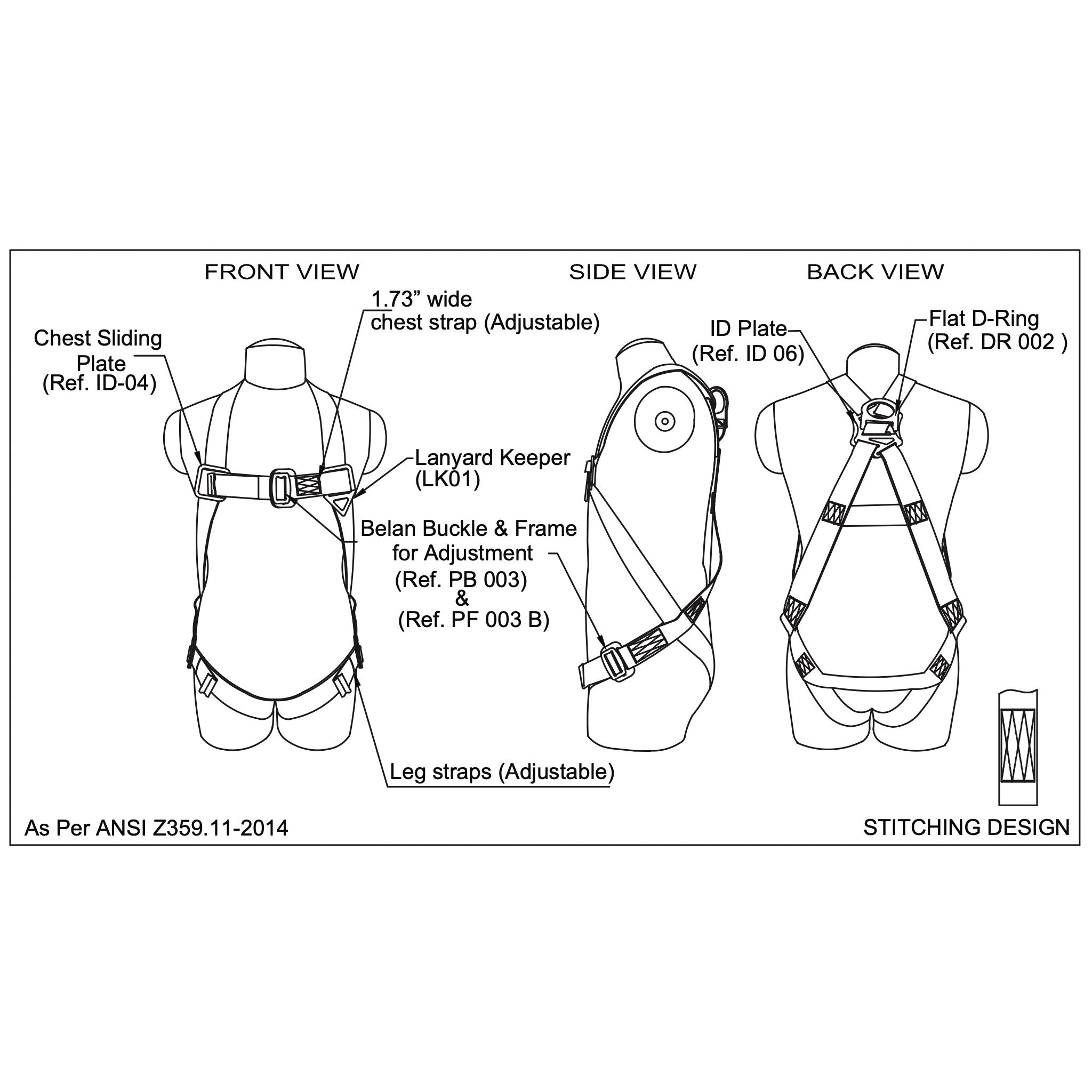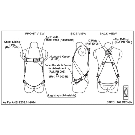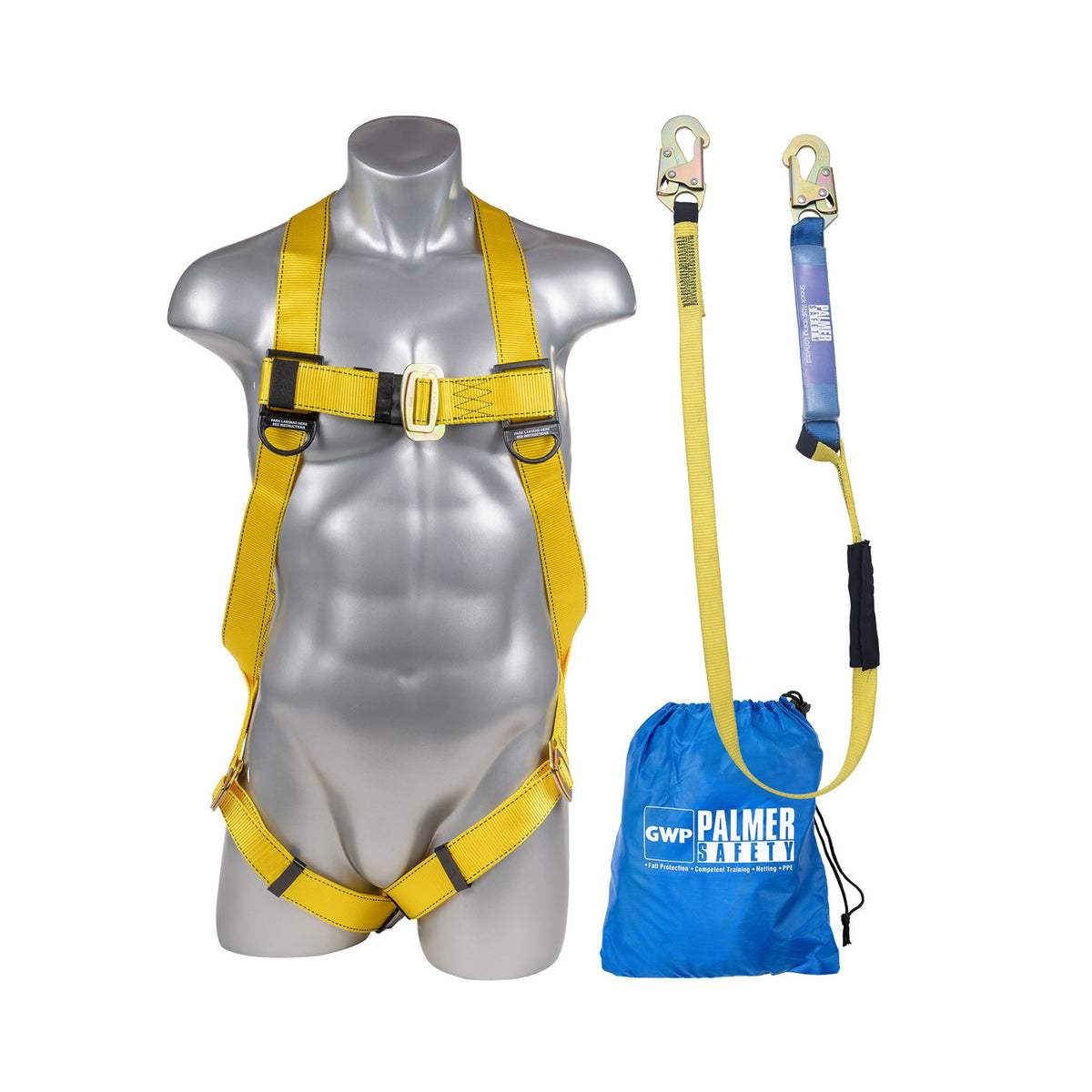 Harness/Lanyard Combo – 3pt H11110005 FBH with L111111 lanyard . With BG03 Bag. Meets or Exceeds ANSI Z359.11-2014. A10.32-2012.