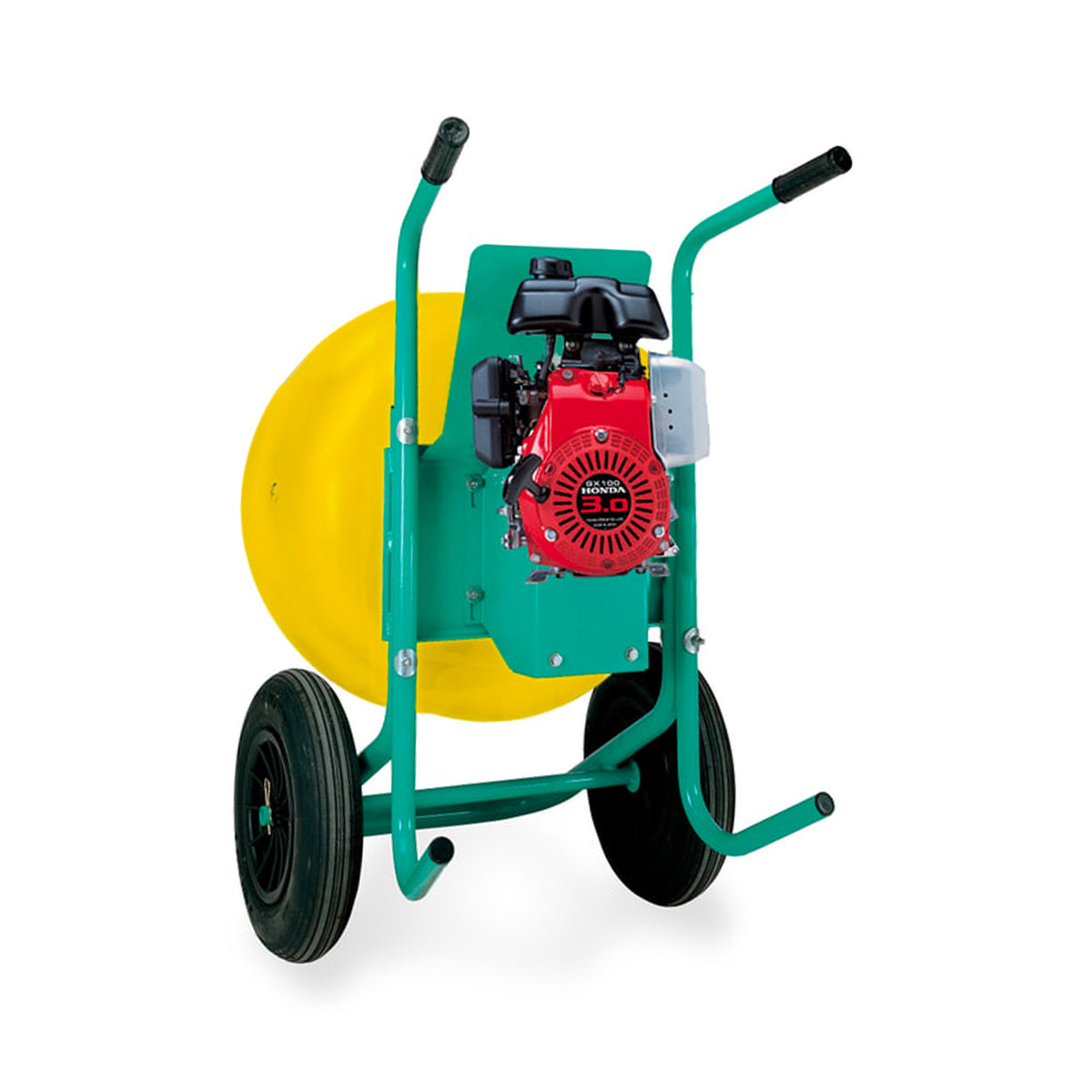 The Wheelman II Wheelbarrow Style Mixer is built to tackle all types of projects and materials, such as mortar, stucco, grout, concrete, and is the only mixer with a removable drum that can be loaded by one person into a small vehicle. Use it to mix, transport, and then dump right to your work area. The Polyethylene drum is spun-injected, a plastic forming process that delivers a perfectly round and extra-durable drum. The optional 360° Swivel Stand is an excellent add-on for an easy to dump solution. Available with a Honda gas engine or an industrial-grade electric 110V motor. Available with Poly Drum and Steel Drum.