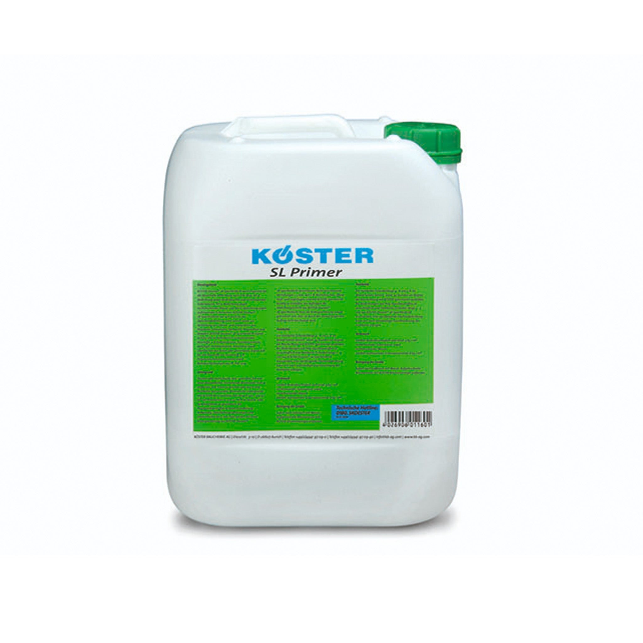 A transparent curing, low viscosity butadiene-styrene primer with a slightly sticky surface. KOSTER SL Primer reduces the absorbency of mineral surfaces such as concrete and screed and equalizes differential absorbency rates in the substrate. It reduces the bubbling effect when working with KOSTER self leveling floor products. KOSTER SL Primer is solvent, plasticizer, and filler free. KOSTER SL Primer is water resistant; it will not be washed or rained away after curing.