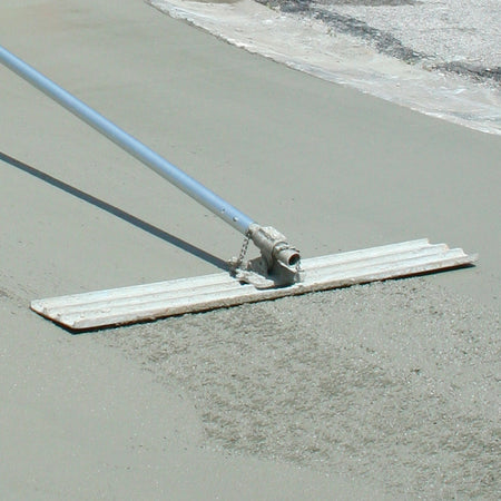 Level and smooth a large area of concrete before finishing with this heavy-duty, yet lightweight bull float. The float opens the surface to release the bleed water as it embeds the aggregate. Lightweight Genuine Extru-Lite™ Magnesium is 30% lighter than aluminum. This 4' bull float features multiple ribs providing reinforced strength for long wear and flatness. The float is broken-in, curved, and properly balanced to prevent digging. The square ends allow the user to finish along forms and into corners for complete coverage. The 48" x 8" float is painted to protect the blade. Designed for a 4-hole bracket and can be used with double-tilt action brackets (CC270, CC294, CC296, GF10330) or single-tilt action brackets (CC696, CC800), sold separately. Attach one or more groover bits (sold separately) to turn this tool into a groover. Proudly made in the USA.