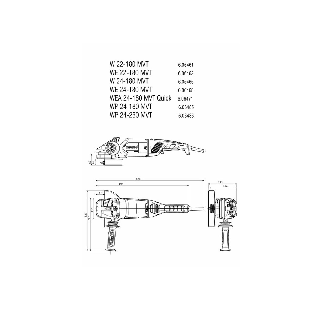 Metabo 7 in. Angle Grinder, W 24-180 MVT, 606466420