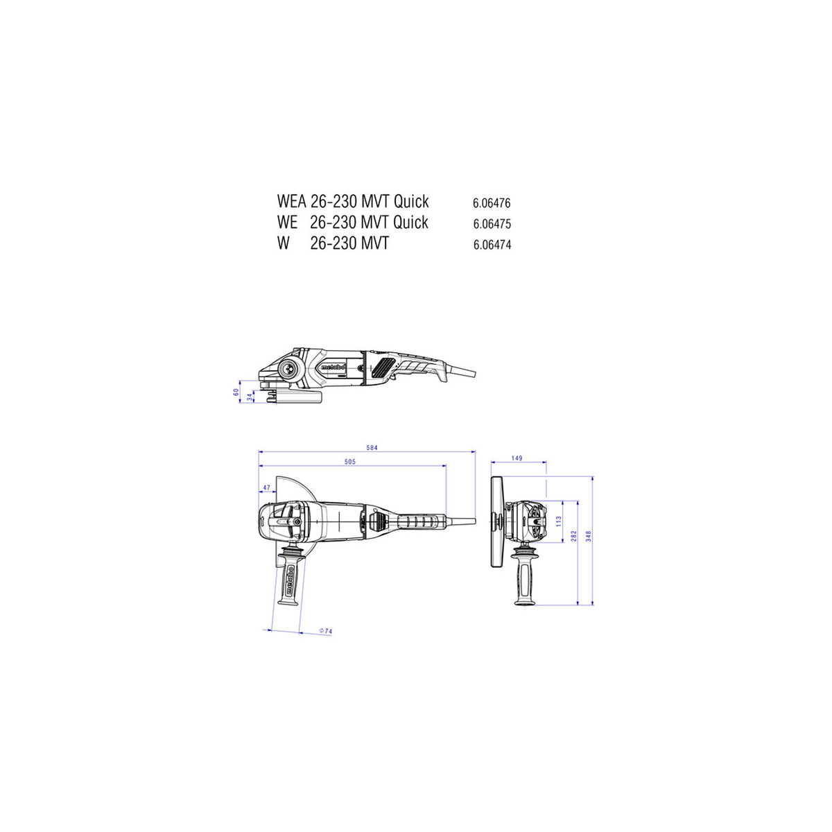Metabo 9 in. Angle Grinder, Mvt Non-Locking - W 26-230 - US606474760