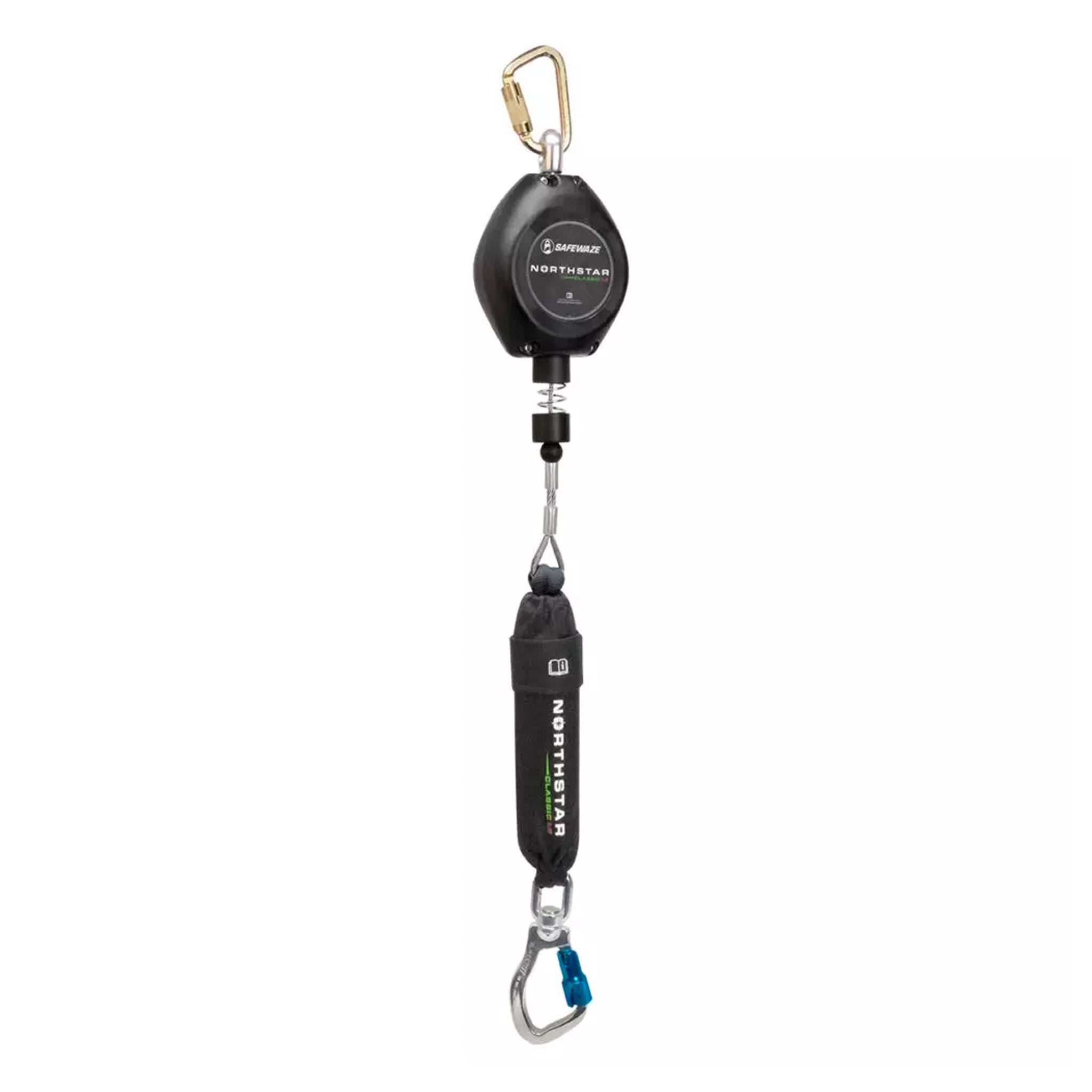 The Northstar Classic Cable Self Retracting Lifeline is designed with specialized impact resistant housing and non-corrosive components. This durable leading edge SRL also features an enhanced swivel top for greater mobility, load indicating snap hook and fast-acting braking system.