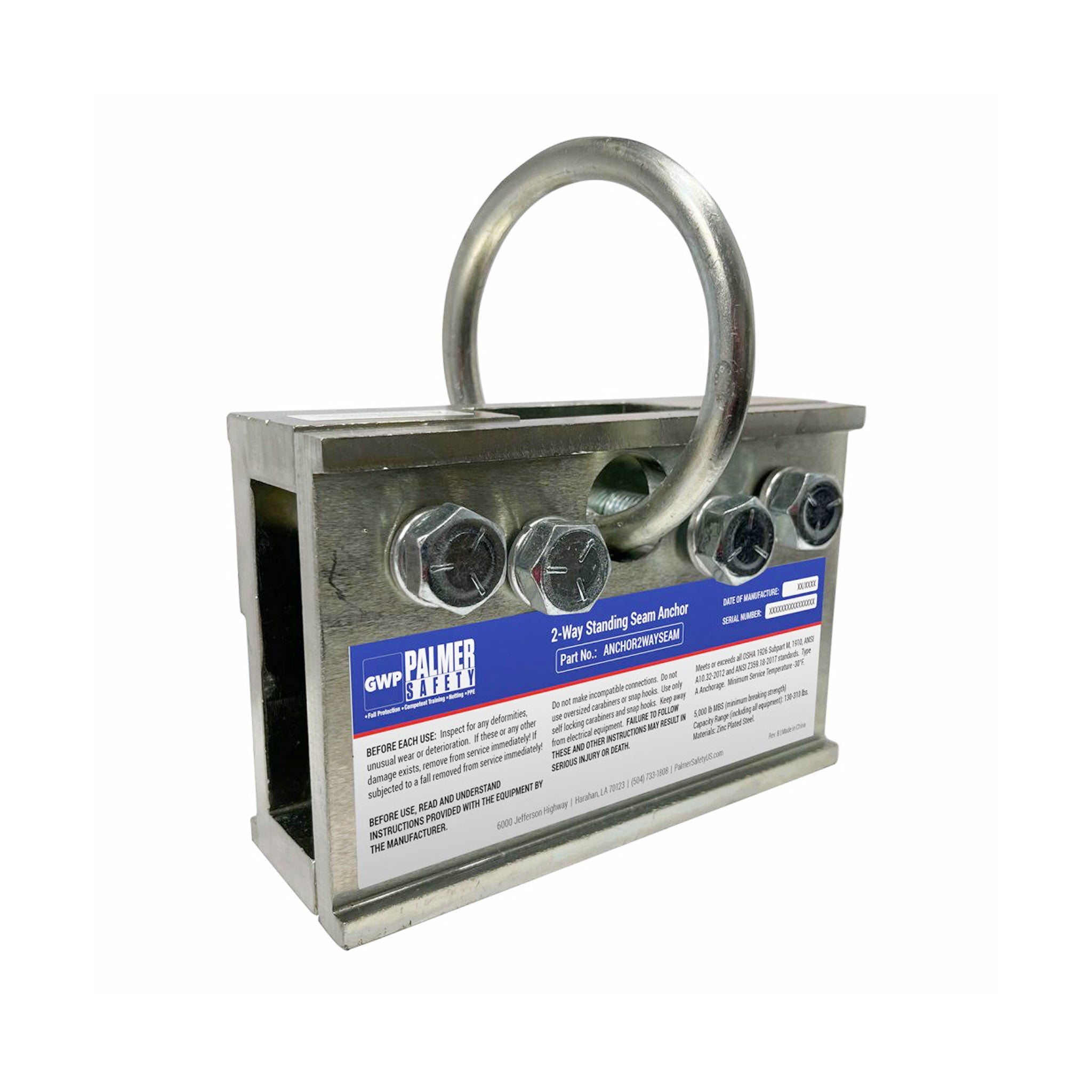 The Palmer Safety 2-Way Standing Seam Anchor is lightweight, reusable, and easy-to-use. This product possesses an all steel construction with galvanized finish making it very durable. Compatible with a variety of standing seam designs.