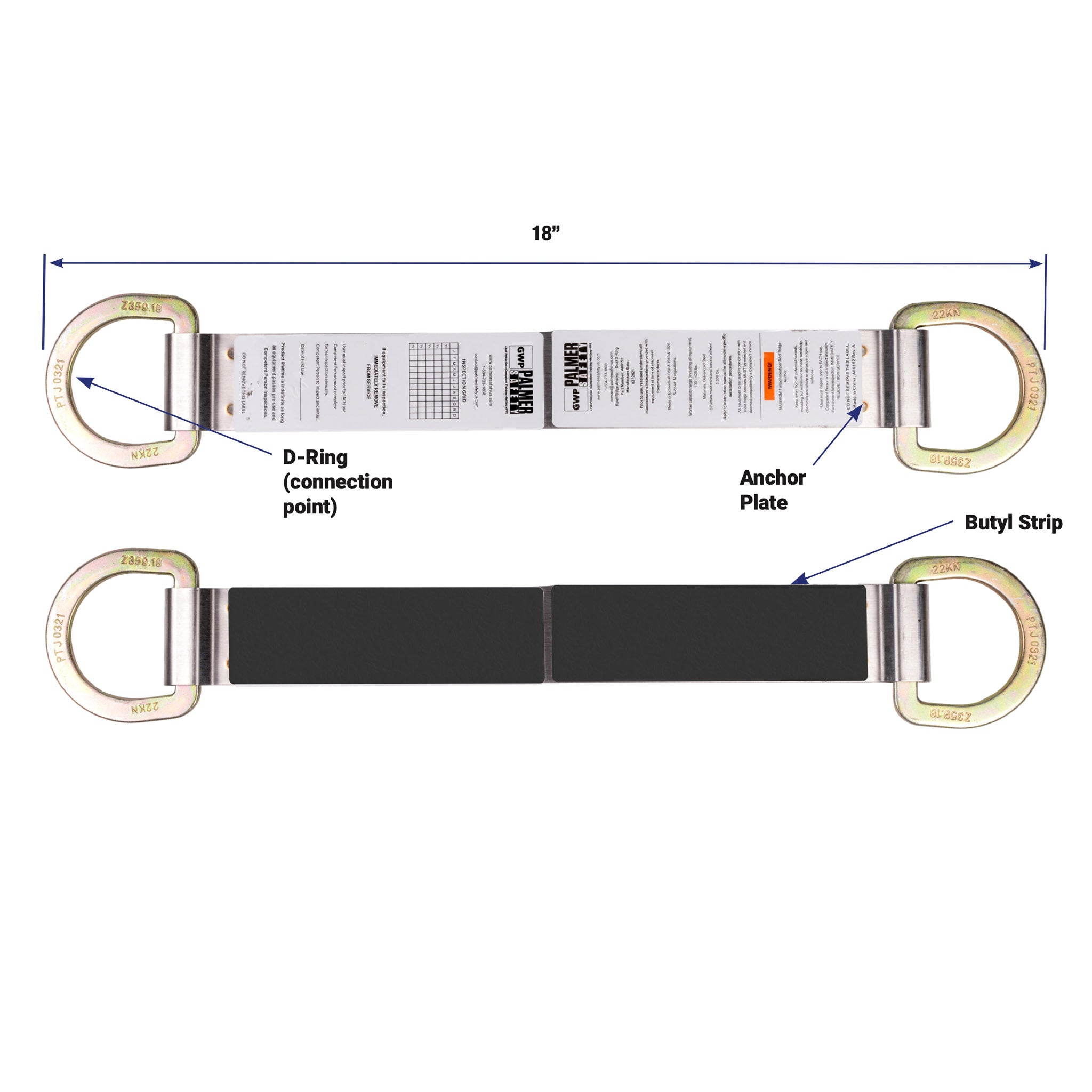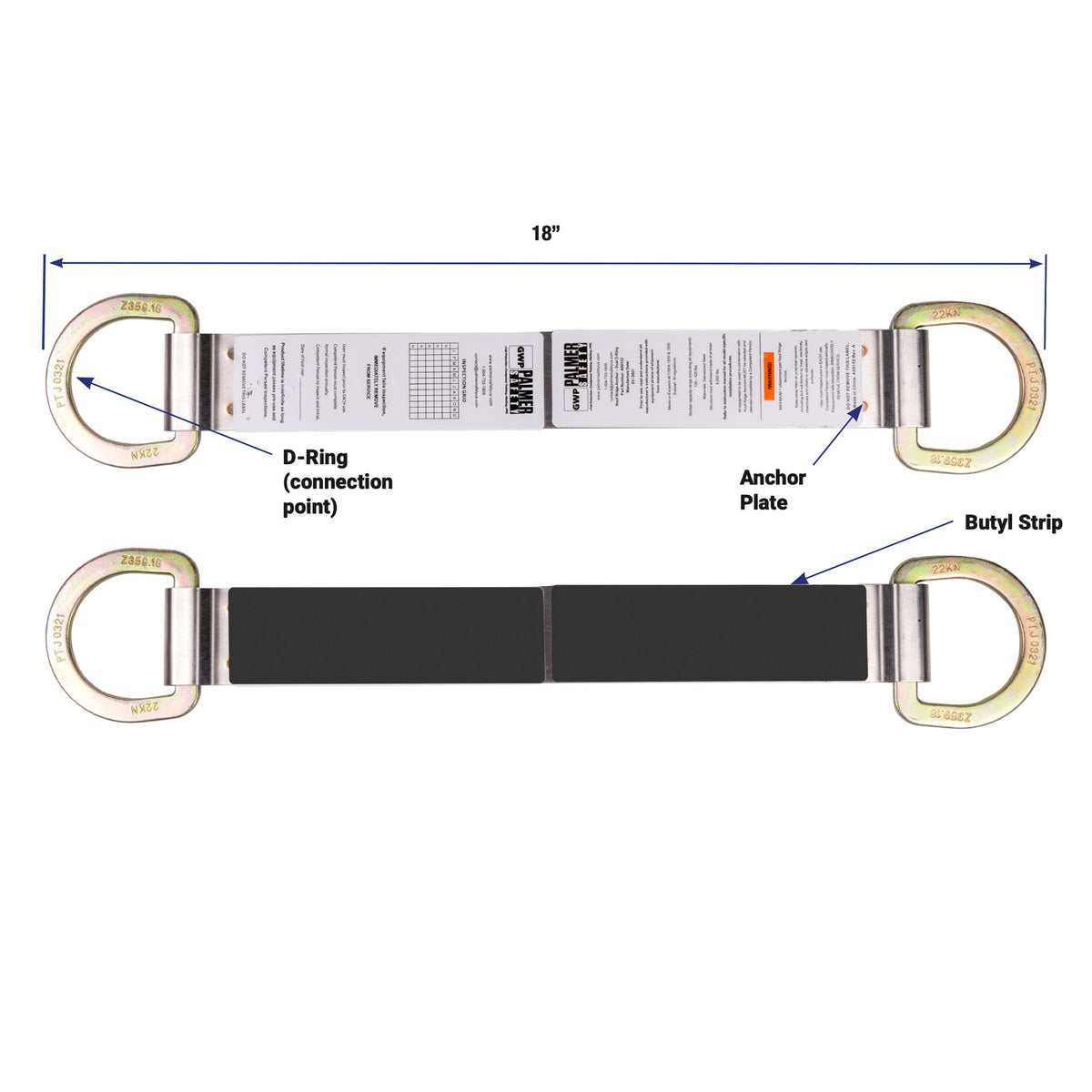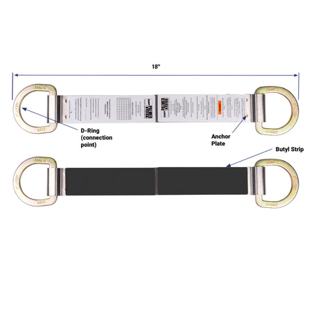 Roof Ridge Anchor. Galvanized Steel with dual stamped D-rings. Minimum breaking strength is 5000 lbs. Meets or Exceeds ANSI Z359.18-2017, A10.32-2012.