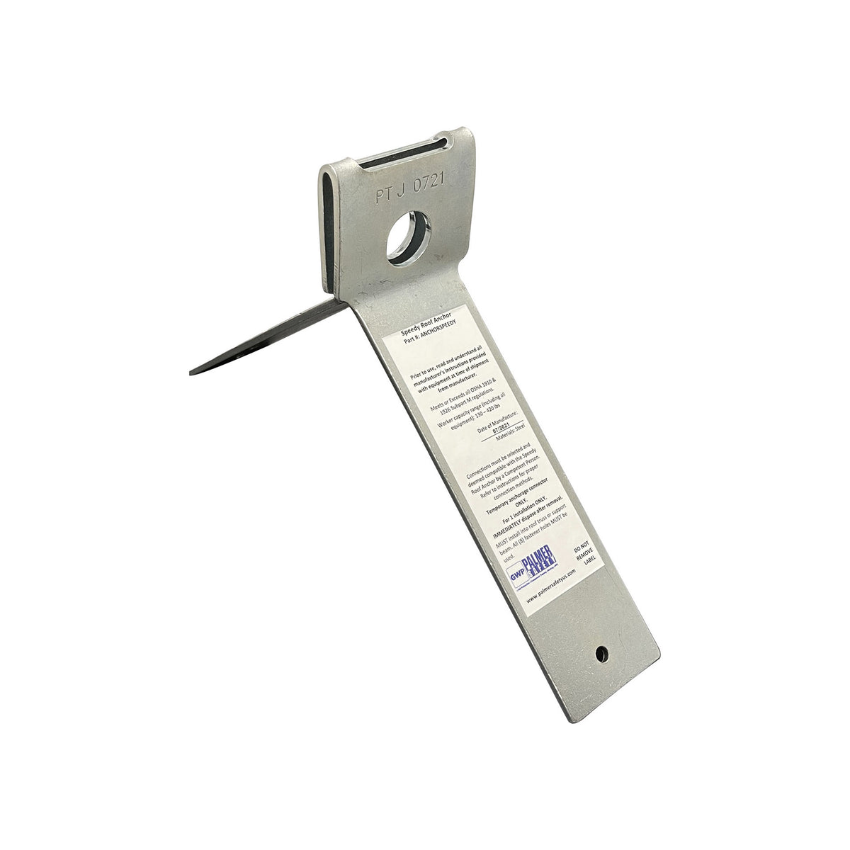 The ANCHORSPEEDY by Palmer Safety is an anchorage connector that can be conveniently disposed of after use. It is specially designed to fit a range of wood roof pitches and meets all relevant OSHA regulations. Installing and removing the ANCHORSPEEDY is easy and hassle-free. Simply adjust it to fit over the roof ridge of your choice and use all the installation holes to nail it into the roof truss.