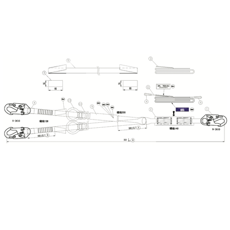 Palmer Safety Lanyard 3 Ft. Tie Back, Shock Absorber, Small Hook, Double Leg - L315211