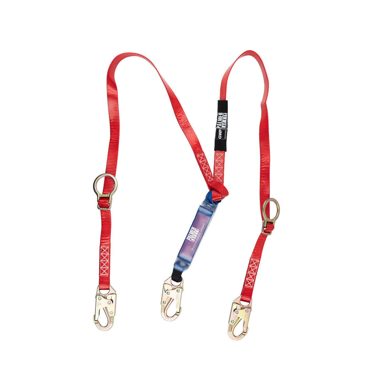 Lanyard 6’ Double Leg Urethane Lanyard, Urethane Coated Webbing, Blue Shock Pack, 3/4” Hooks, Large Tie-back Rings on Each Leg, Rated 420 lbs., Meets or Exceeds ANSI Z359.13-2013.