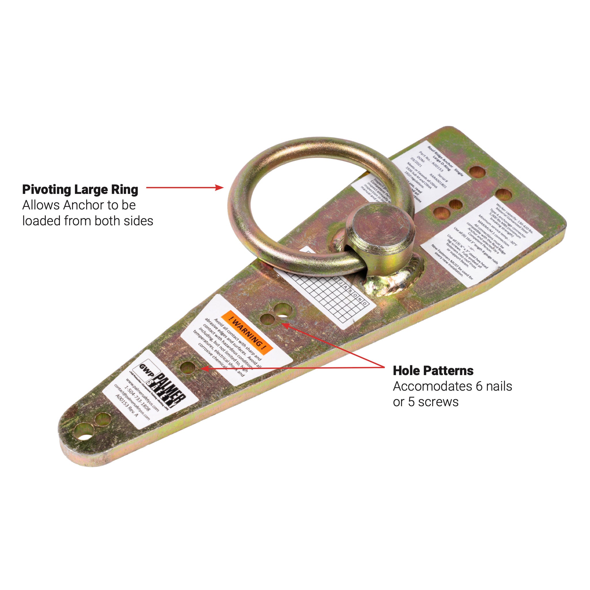 Galvanized steel roof anchor with stamped single large D-Ring. Min breaking strength 5000 lbs. Meets or Exceeds ANSI Z359.18-2017 & A10.32-2012.