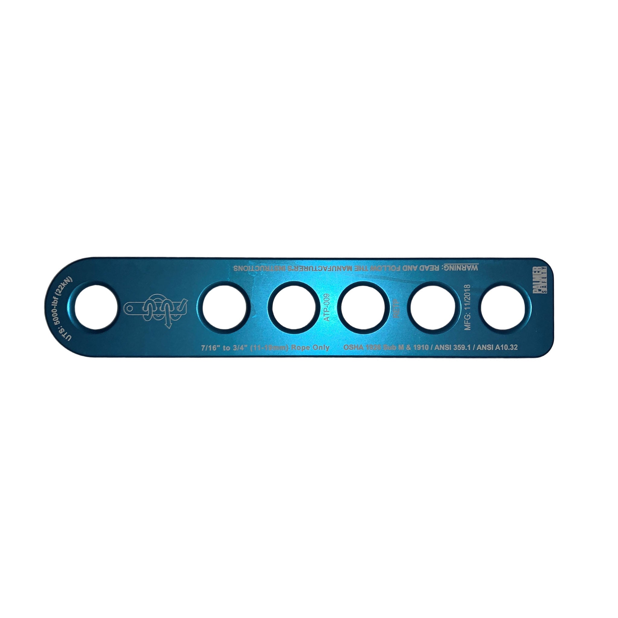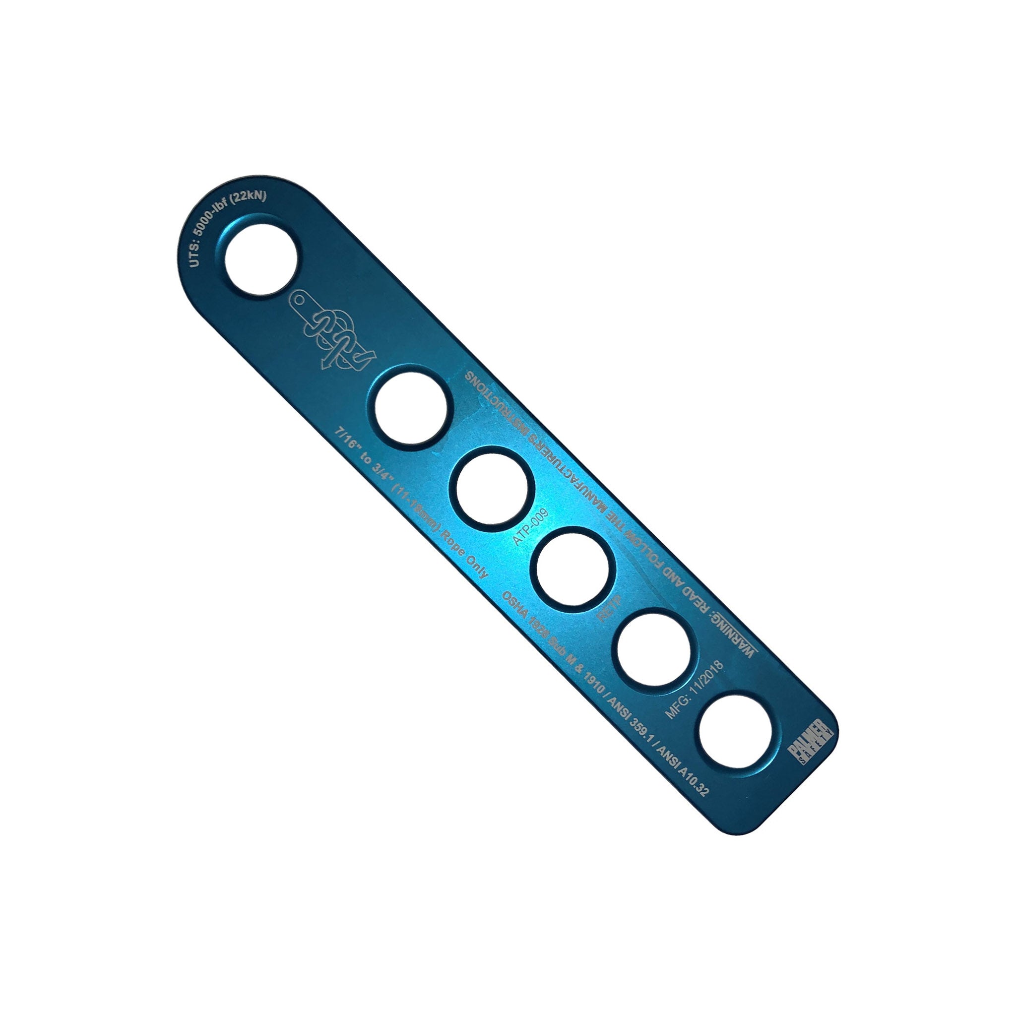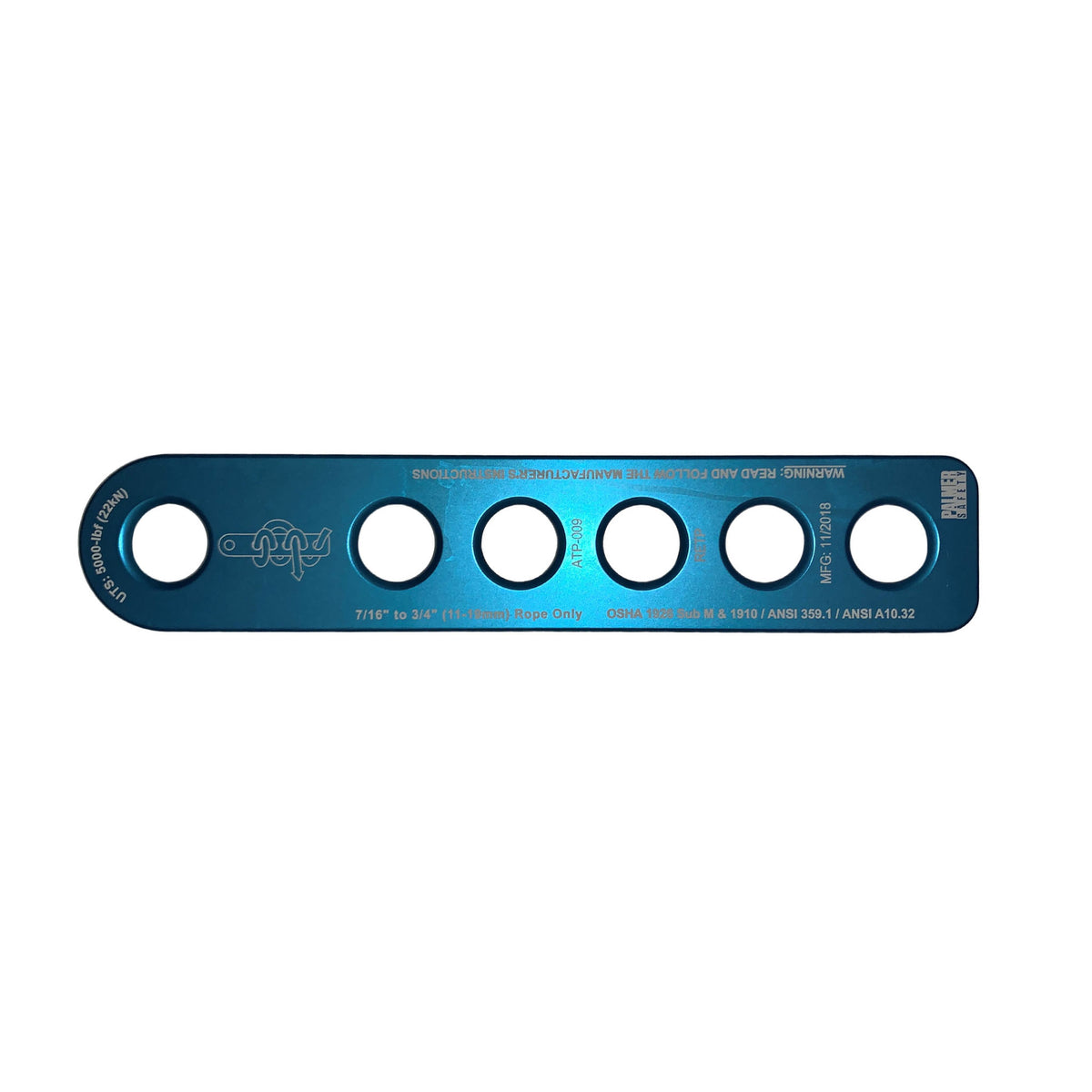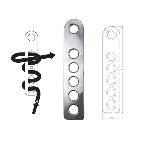 ClimbTech’s lightweight aluminum end termination plate. The end termination plate has six 5/8th diameter holes to be used with 7/16” to 3/4″ (11-19mm) rope.