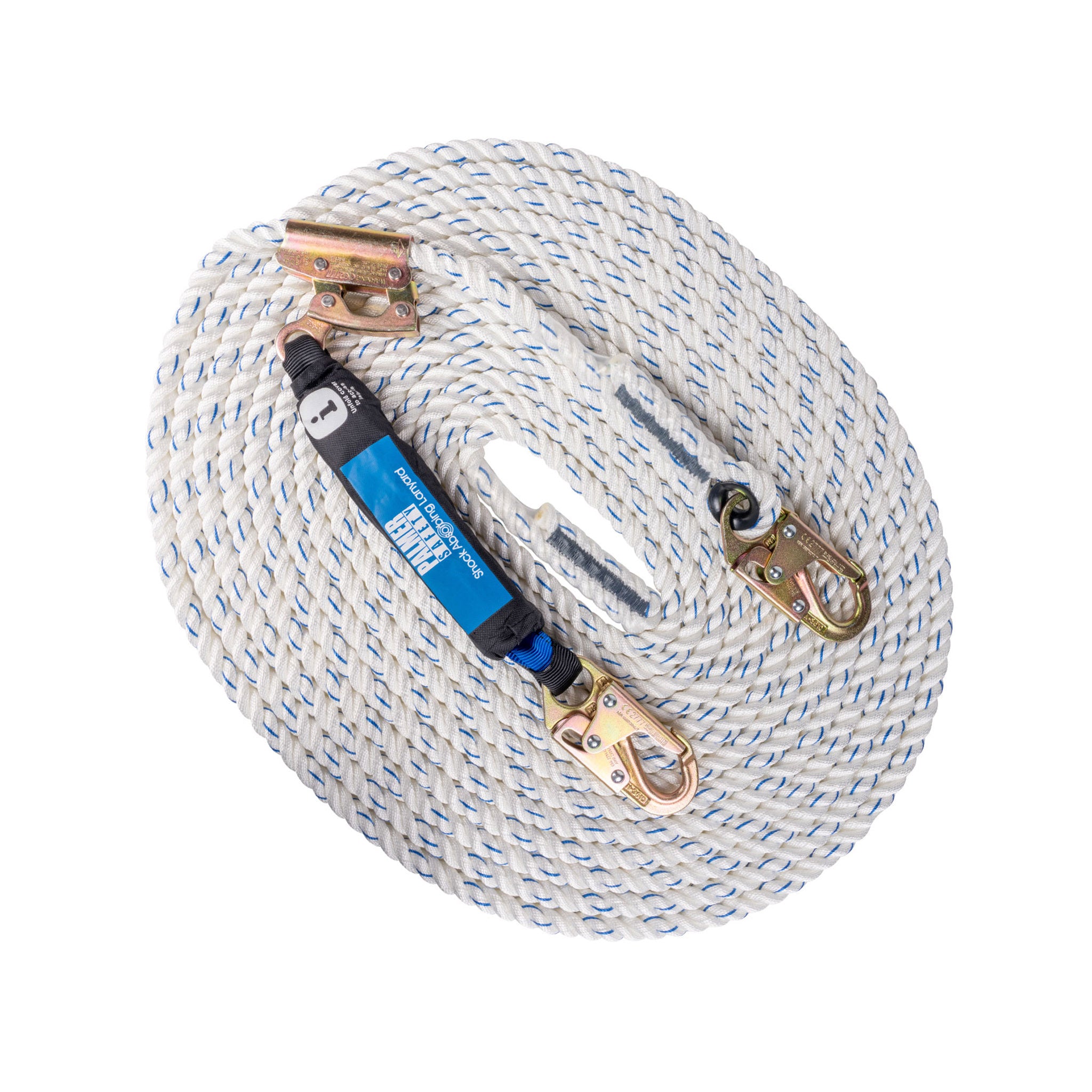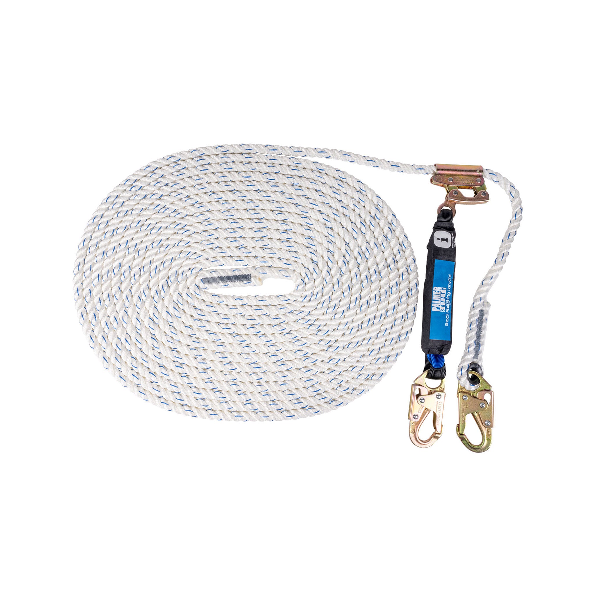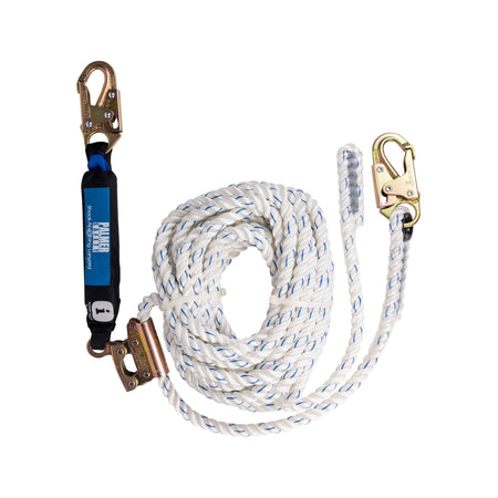 Roofing kit. 5 pt. Harness, 50 ft. lifeline with attached rope grab with shock absorbing lanyard and 3/4” hooks, Roof anchor, 4 gallon bucket. Meets or Exceeds ANSI Z359.11-2014, Z359.18-2017, Z359.13-2013, Z359.15- 2014.