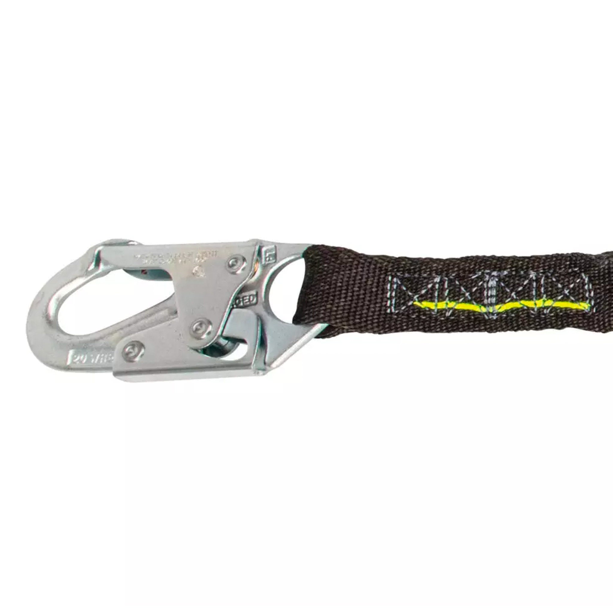 The PRO 6' Internal Energy Absorbing Lanyard is made from specialized high performance webbing with POY at the core to act as deceleration and force management system, creating a lightweight streamlined design with no external energy absorber. Includes single leg construction, protective label cover and forged steel hooks.