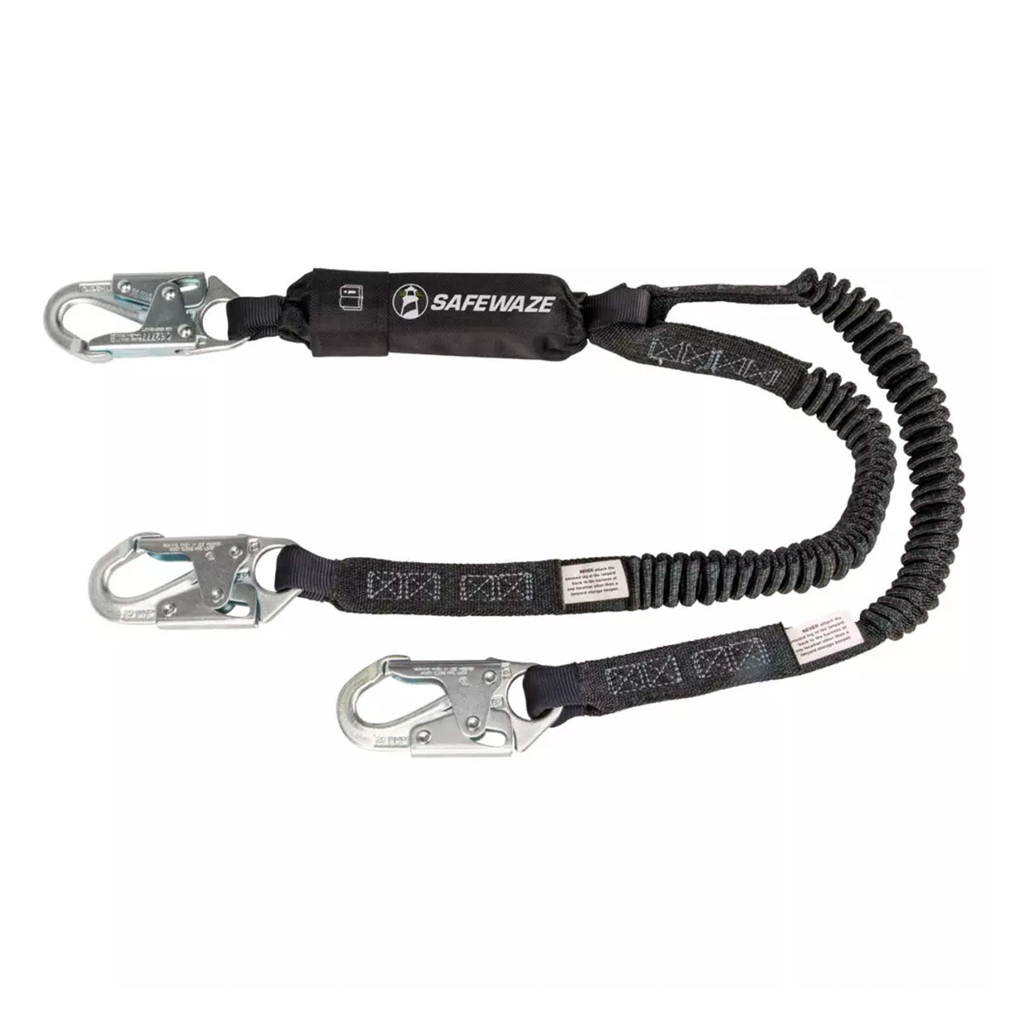 Safewaze PRO 6 ft. Stretch Energy Absorbing Lanyard: 12' FF Dual Leg, Snap Hooks FS88761-FF