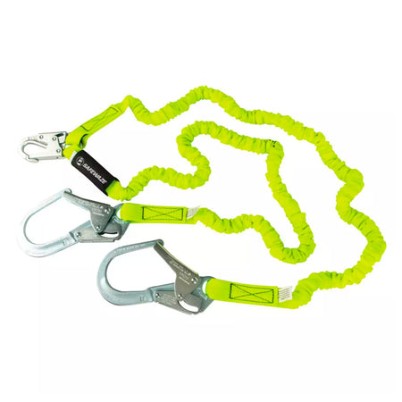 Safewaze PRO 6 ft. Stretch Internal Energy Absorbing Lanyard: Dual Leg, Rebar Hooks - FS596