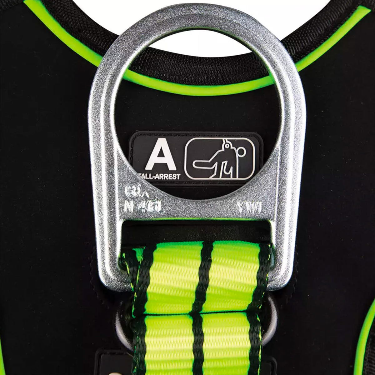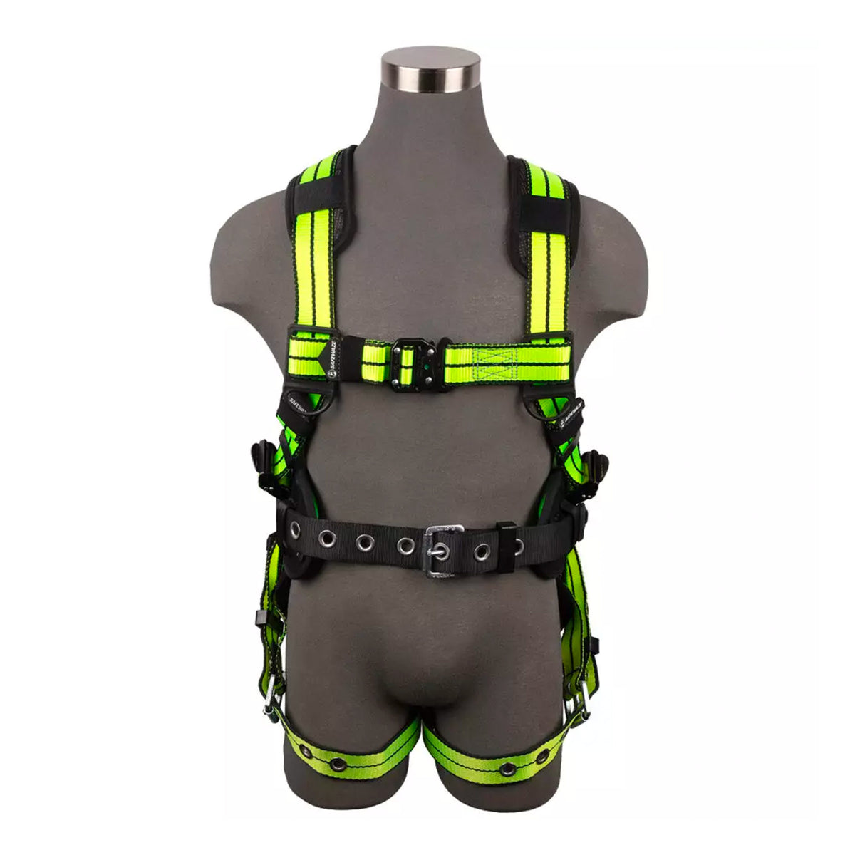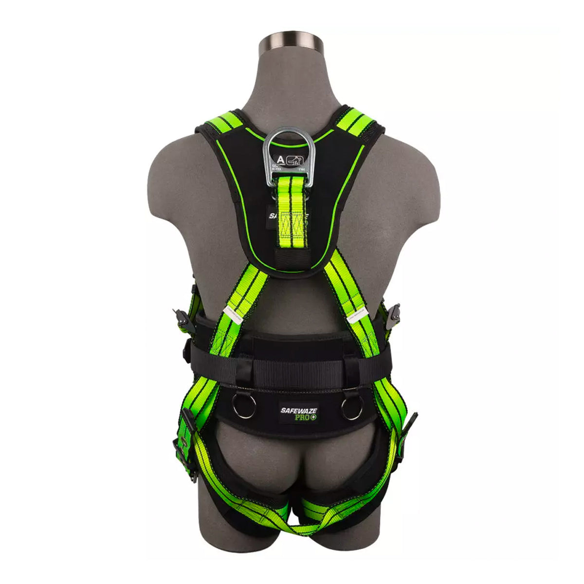 The PRO+ Harness is our all-steel premium harness, combining innovation with functionality. High-vis abrasion resistant green webbing and advanced technical padding, composed of moisture wicking linings and closed cell foam, provide all-day ease of use and extended product life. Models equipped with dorsal SRL link, corrosive resistant steel-plated D-rings, quick-connect buckles and aluminum torso adjusters. Offered in a variety of configurations.