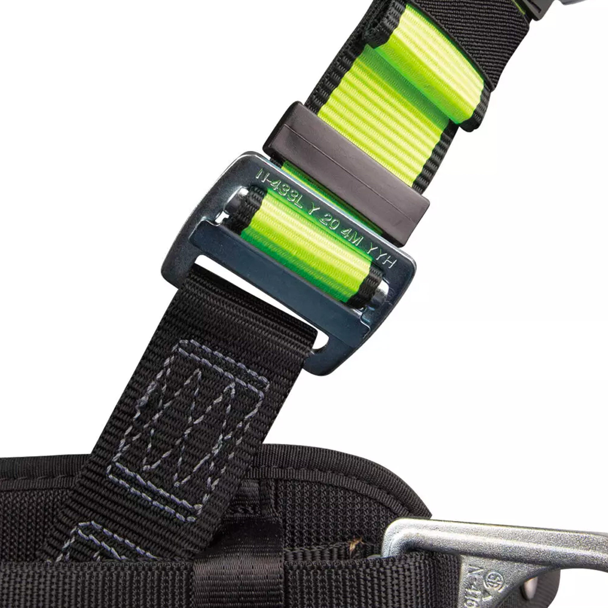 The PRO Harness is a dependable workhorse, incorporating premium features for outstanding performance. Built with ergonomically designed padding and high-vis abrasian-resistant green webbing. Models equipped with corrosive resistant steel-plated D-rings, buckles and quick-connects. Offered in a variety of configurations.