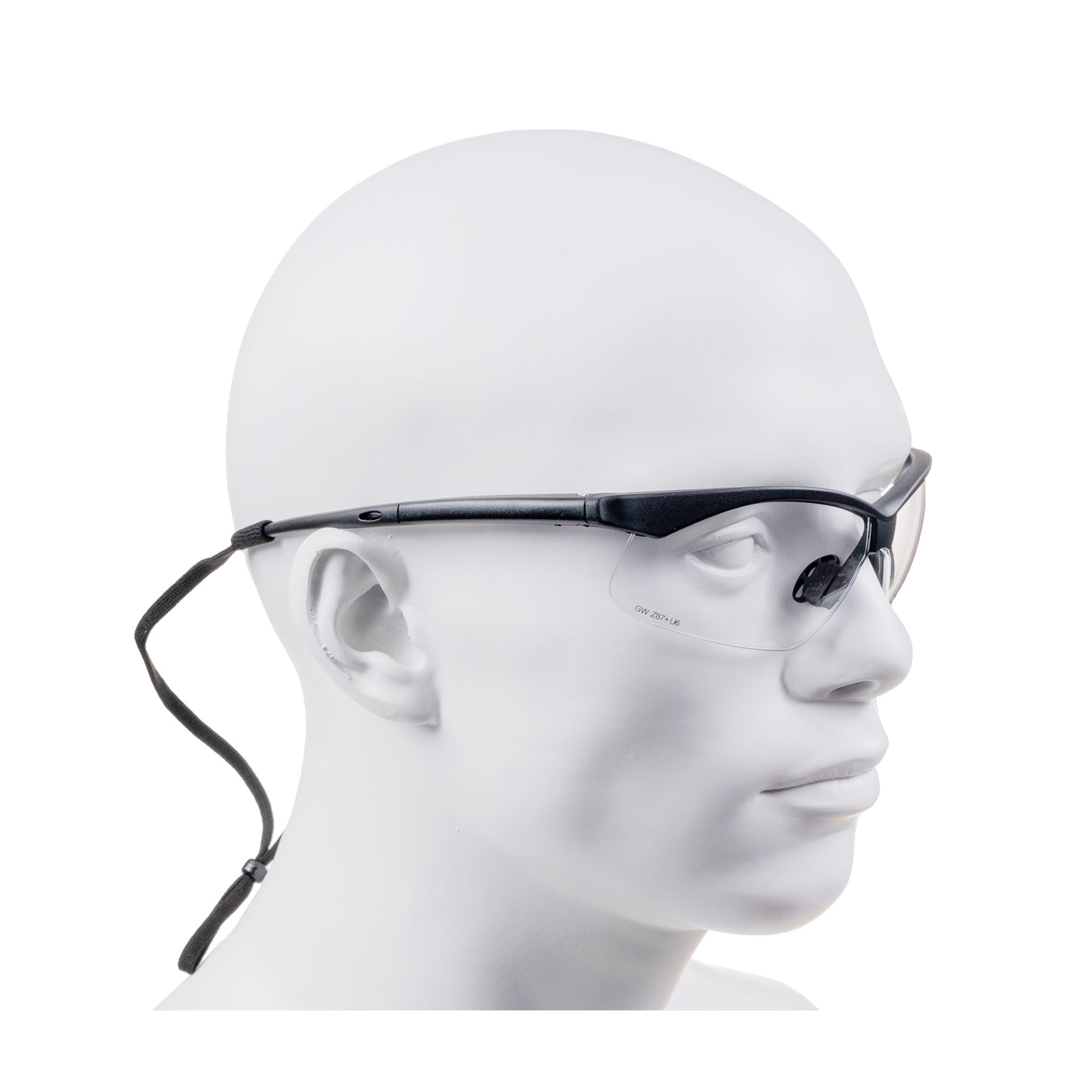 Lightweight, cool-looking RIVAL Safety Glasses will appeal to all workers. The convenient neck cord keeps glasses always within reach. Rubber-tipped temples help relieve pressure and a soft rubber nosepiece offer all-day comfort. Durable lens coated for scratch resistance and 99.9% UV protection. Safety Glass meets ANSI Z87.1+