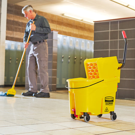 - IMPROVE SAFETY AND PRODUCTIVITY Patented WaveBrake baffles result in less splashing while mopping and maneuvering, helping to create a safer environment for patrons and staff. Additionally, water stays in the bucket, eliminating unnecessary trips to the storage closet to fill up the bucket, enhancing productivity.