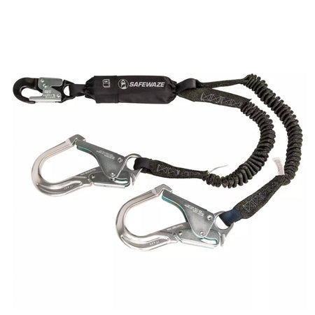 Safewaze PRO 6 ft. Stretch Energy Absorbing Lanyard: 12' FF Dual Leg, Alu Rebar Hooks - 88761-FF-RB-AL