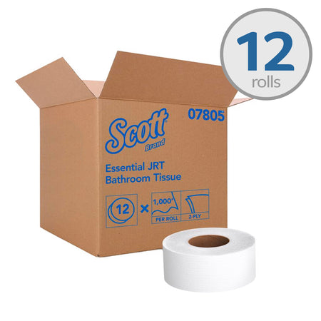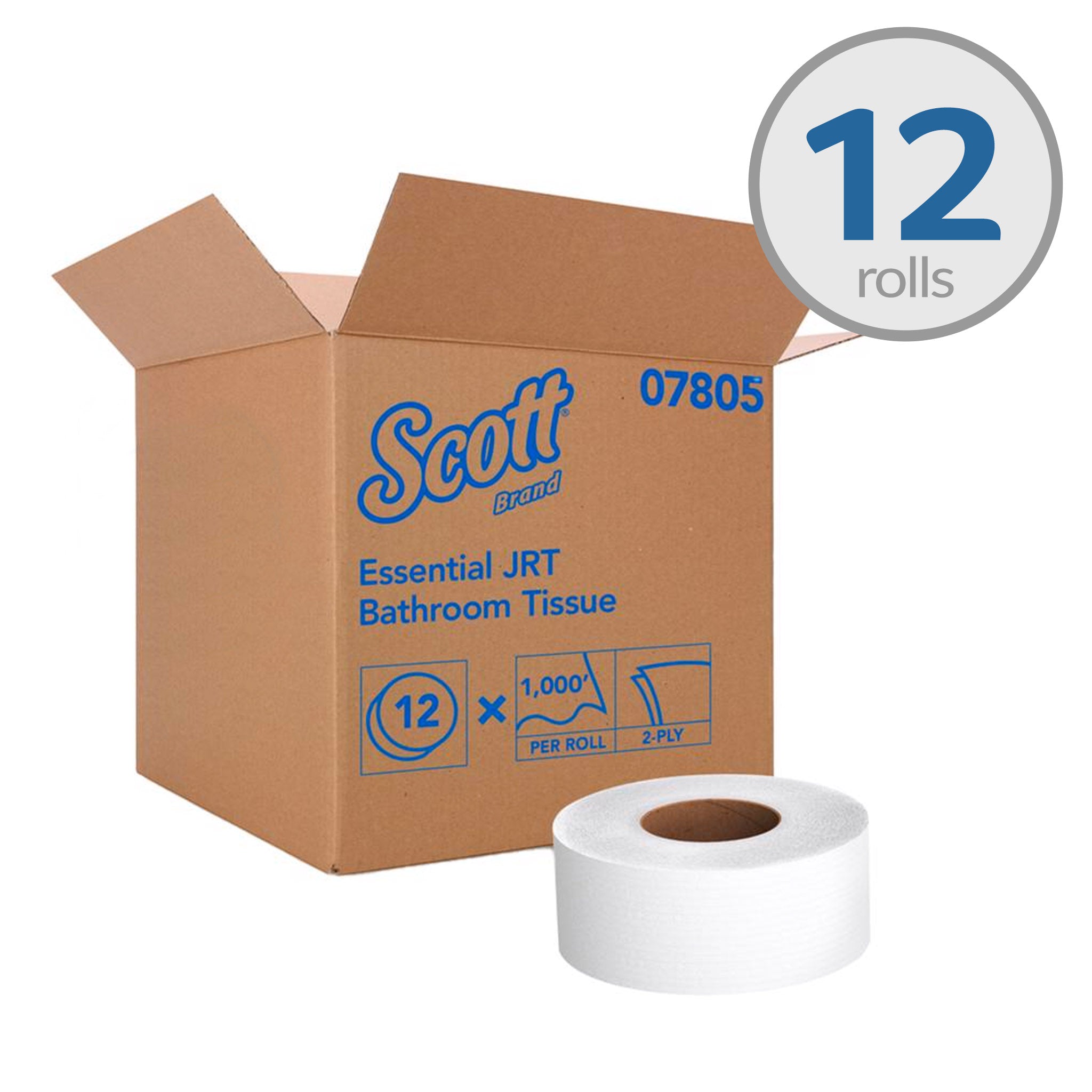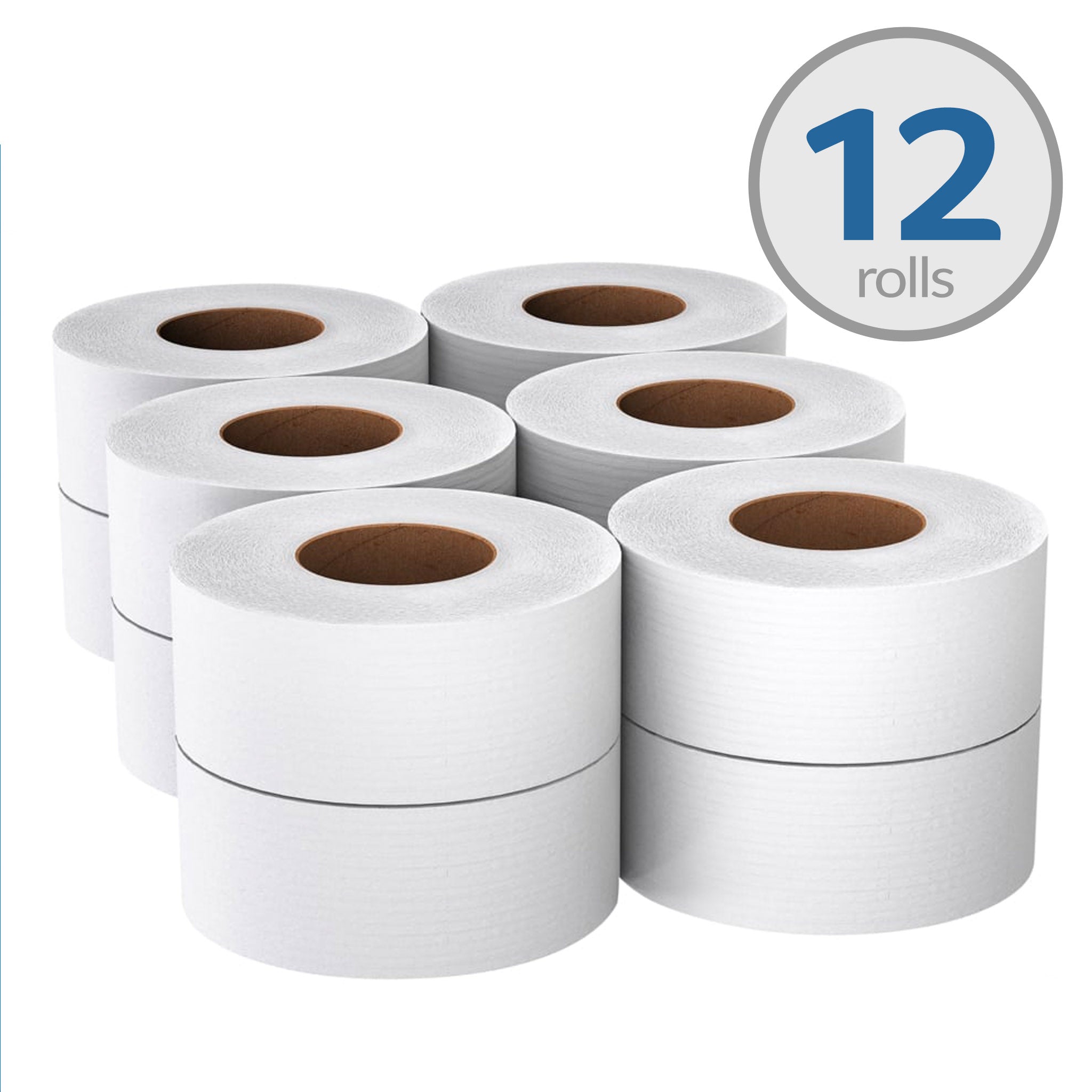- 1,000'/Roll, 12 Scott® High-Capacity Jumbo Roll Toilet Paper Rolls/Case; 12,000'/Case; 2-Ply; White; Non-perforated