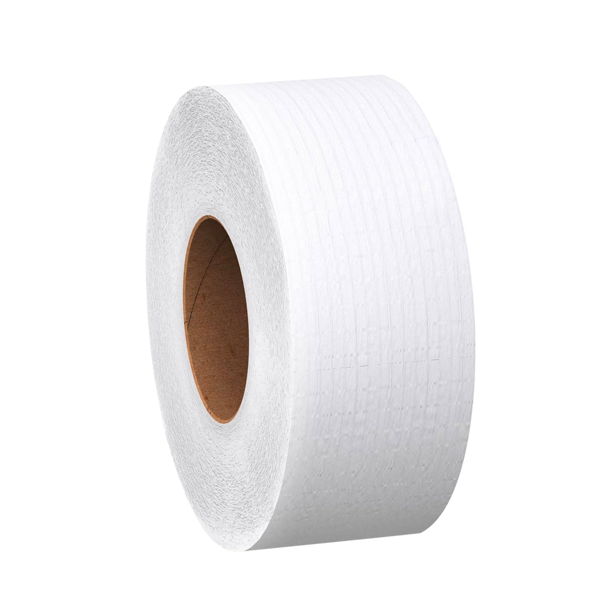 - Non-perforated, 2-ply, white jumbo roll toilet paper is efficient for businesses