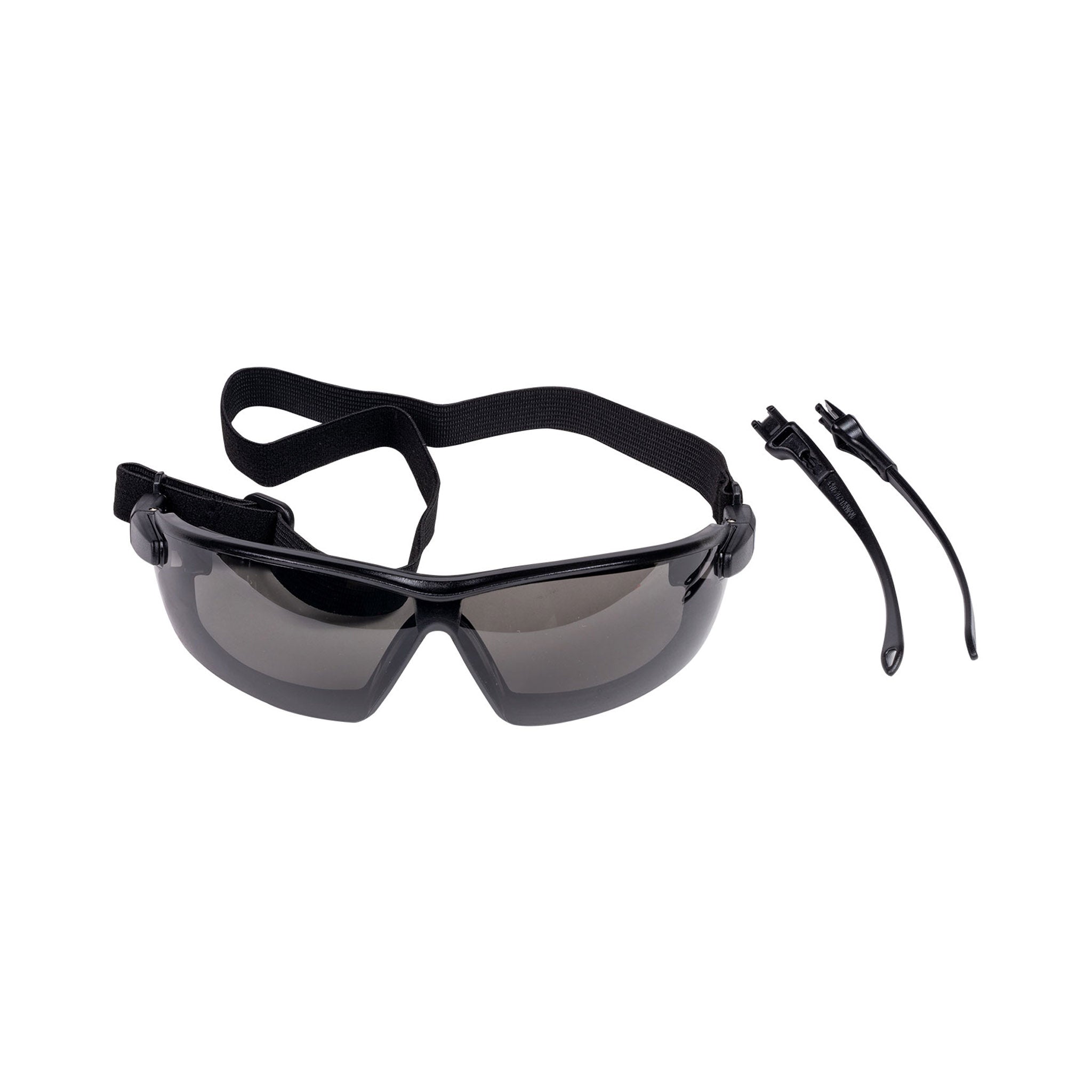 Spoggles combine safety glasses and safety goggles giving you the best of both worlds. This unique eyewear construction is designed with a TPR gasket, detachable arms and strap providing extra protection from debris and impact. With unobstructed field of vision, the PS6525 Spoggles eliminate most blind spots to enhance user performance. Most used for general purposes that require debris, dust, and impact protection. Meets or exceeds ANSI Z87.1-2015.