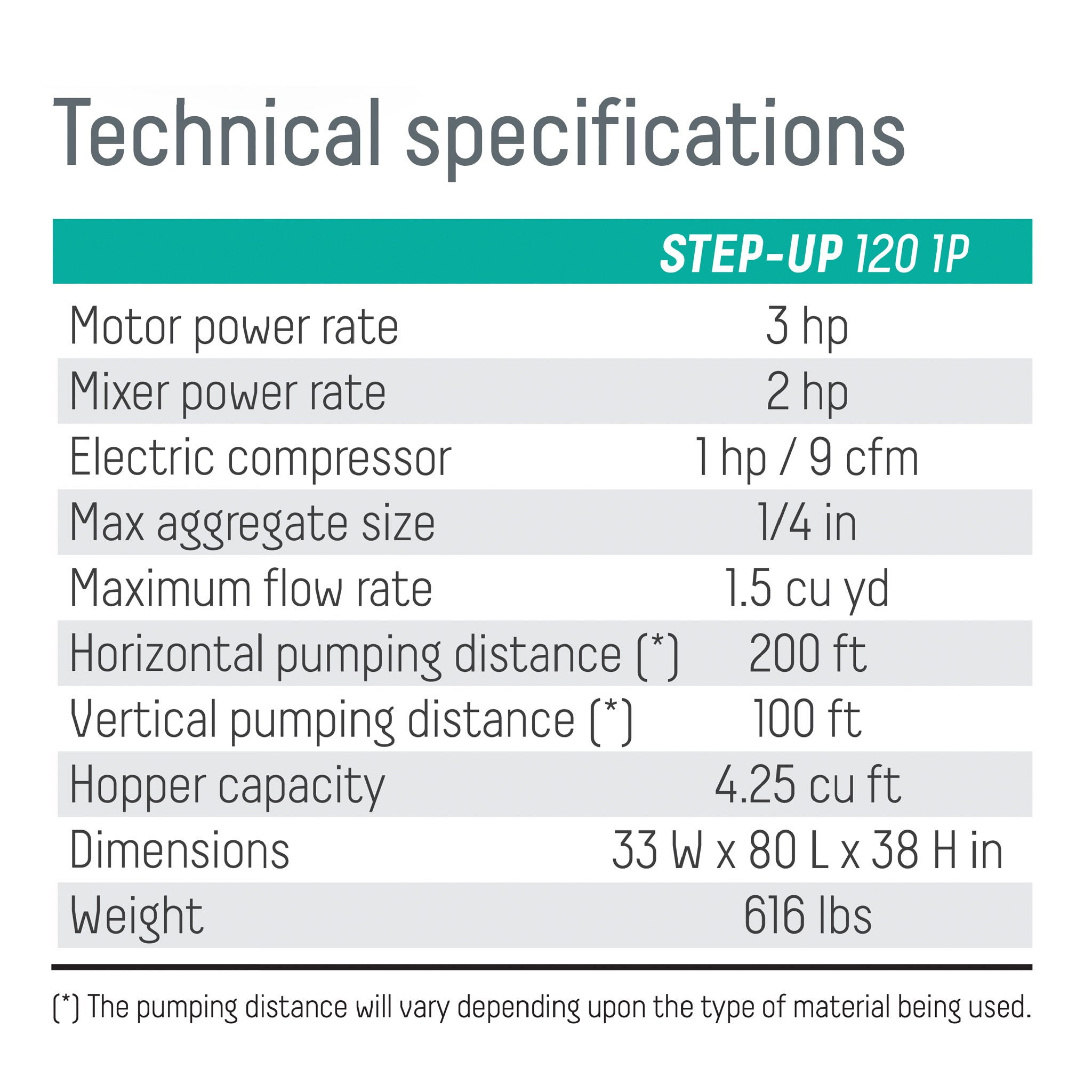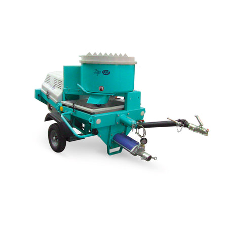 When you need more power to push through stiffer material or need more volume, then look no further than the Step-Up 120 series of pumps. The Step-Up 120 is a towable but very compact pump suited for unique pumping situations and environments. These pumps are extremely versatile. Pump or spray mortars, stuccos, grouts, restoration mortars, underlayments, fireproofing, waterproofings, along with many other materials. Shown with the Step-Up 120 pan mixer for continuous mixing and pumping.