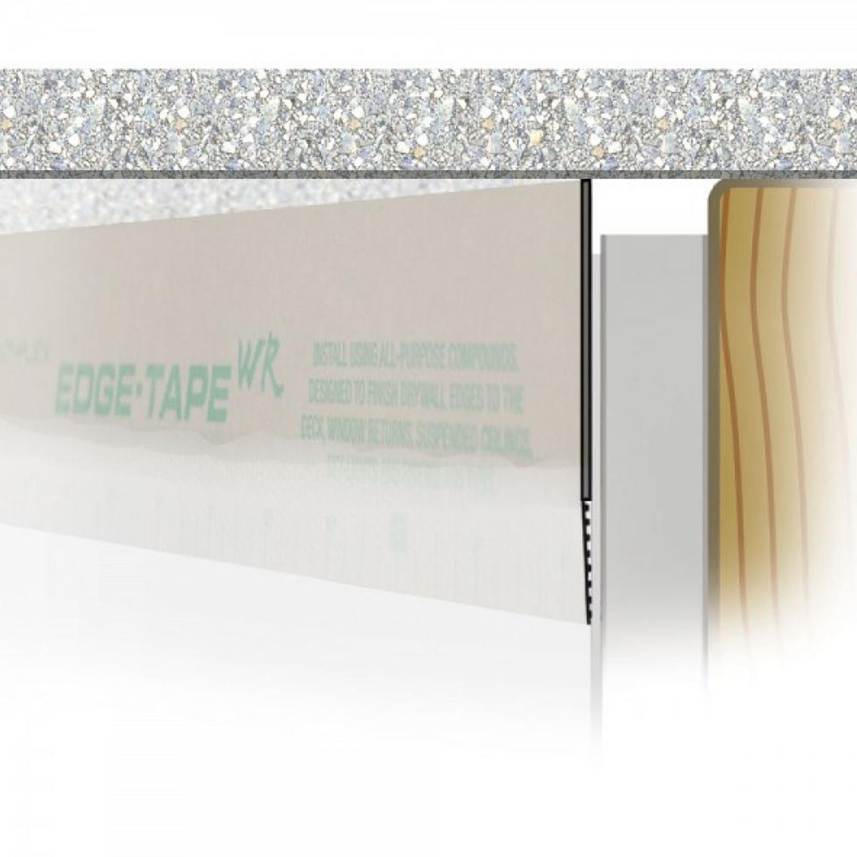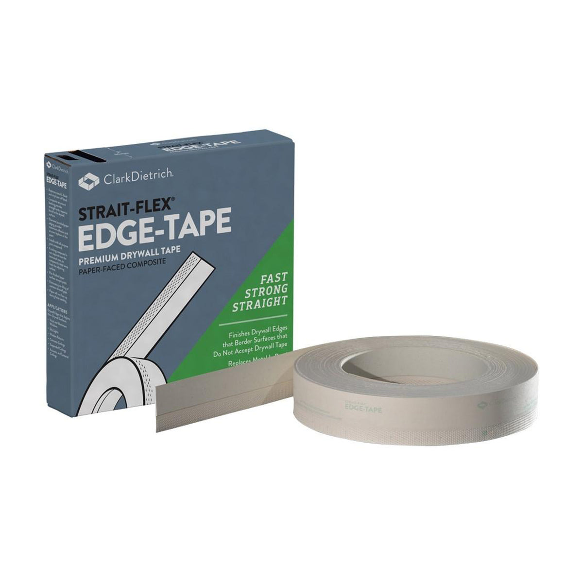 Strait-Flex Edge-Tape is designed to replace tear-off bead. It is installed by the finisher and not by the carpenter; and is installed with standard compounds. The tape’s outer edge features a diamond punch pattern for a superior bond, faster drying, with no rippling or blistering.
