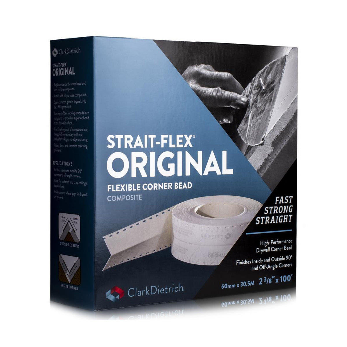 It creates a clean inside and outside, 90-degree, and off-angle corners with much less compound than conventional corner beads. The slotted-edge design facilitates a superior bond to the drywall substrate, providing clean corners without paper fuzz-up during finishing and sanding. Original is ideal for bay windows, coffered ceilings, or any inside corner where gaps are present. Apply with all-purpose joint compound.