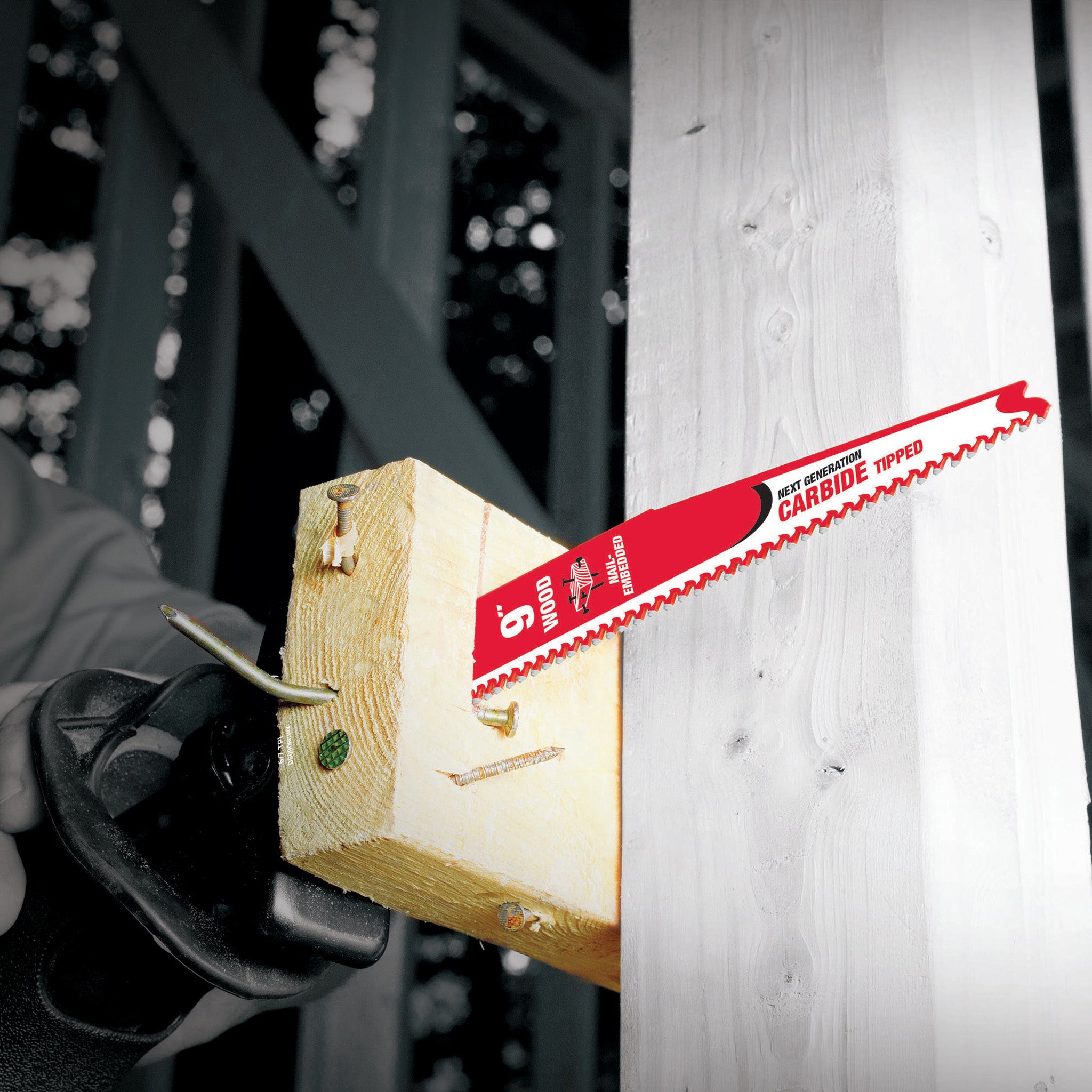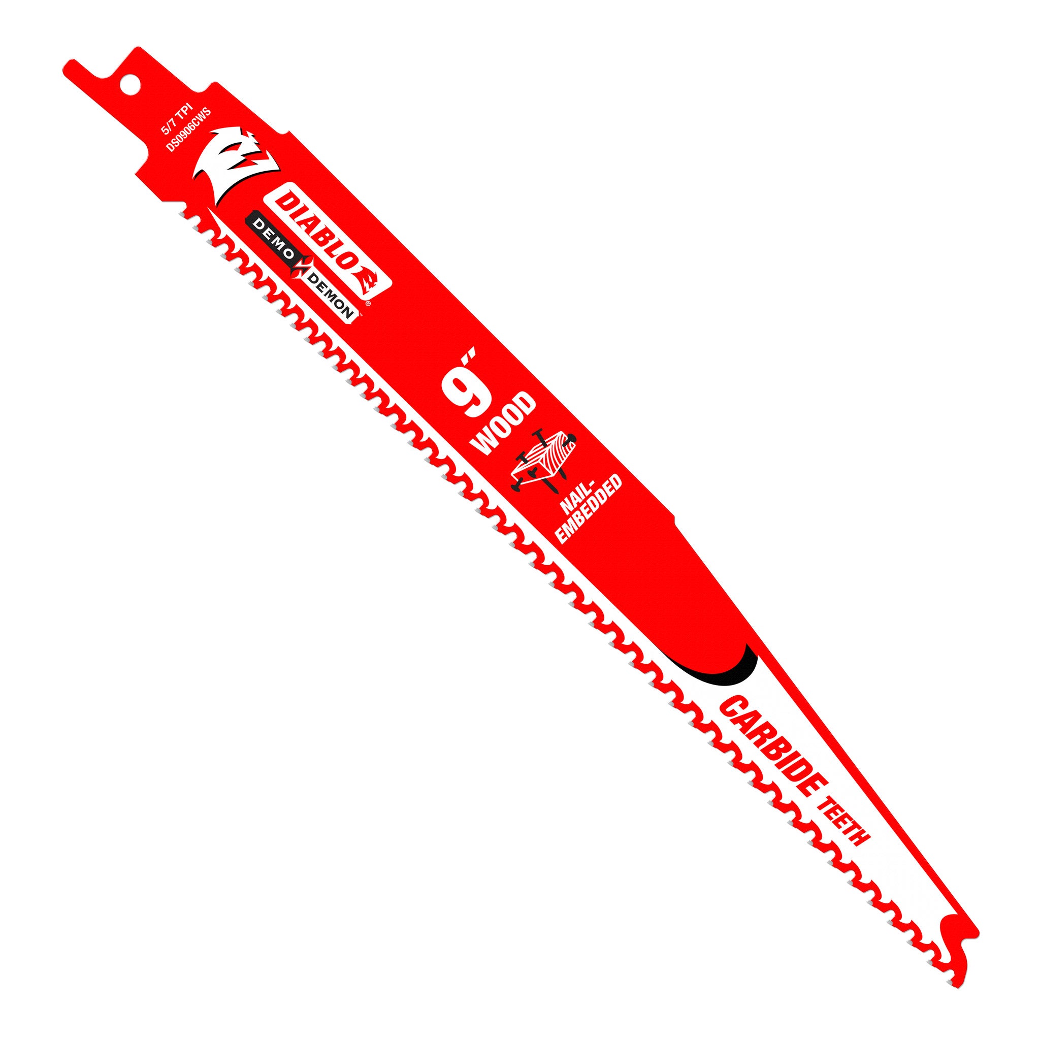 The Next Generation Diablo Demo Demon Carbide-tipped reciprocating blades with new Variable Tooth Design are specifically designed for maximum performance in nail-embedded wood. This high performance carbide-tipped blade delivers unmatched 50 times longer cutting life than bi-metal blades in nail-embedded wood.