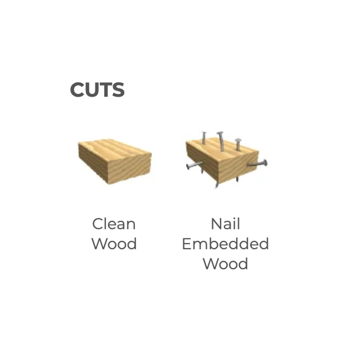 - New Variable Tooth Design provides faster cuts with less vibration in nail-embedded wood