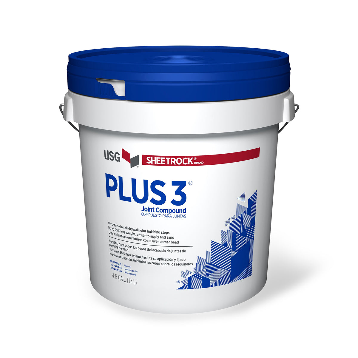 This all-purpose compound weighs up to 25% less than conventional-weight compounds so handling and applying are simpler, easier and faster. Sheetrock® Brand Plus 3® Joint Compound, offers all the benefits of conventional-weight compound but results in less shrinkage and is easy to sand. Use Sheetrock® Brand Plus 3® Joint Compound for embedding paper joint tape and finishing gypsum panel joints or simple hand-applied texturing.