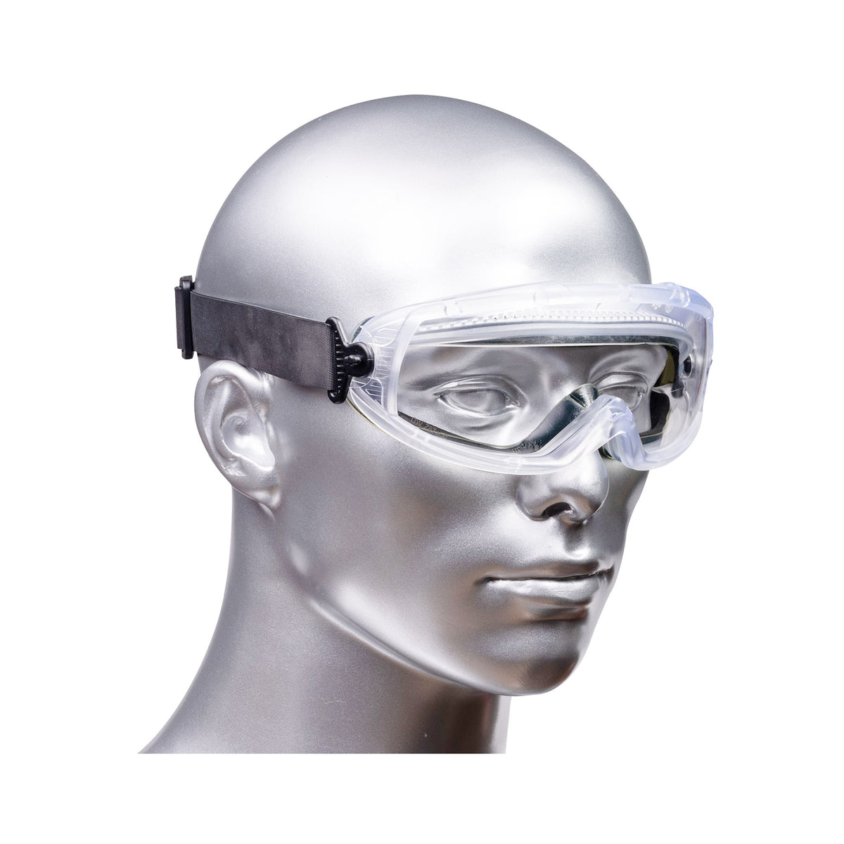 Safety goggles features 99.99% UV protective, antiscratch/fog lens and a neoprene strap. The wide body frame includes form fitting foam cushions that provides excellent viewing and maximum worker comfort. Applications may include oil/gas work, plant, refinery, and general manufacturing. Meets or exceeds ANSI Z87.12015.
